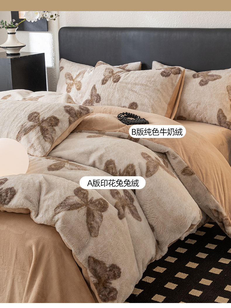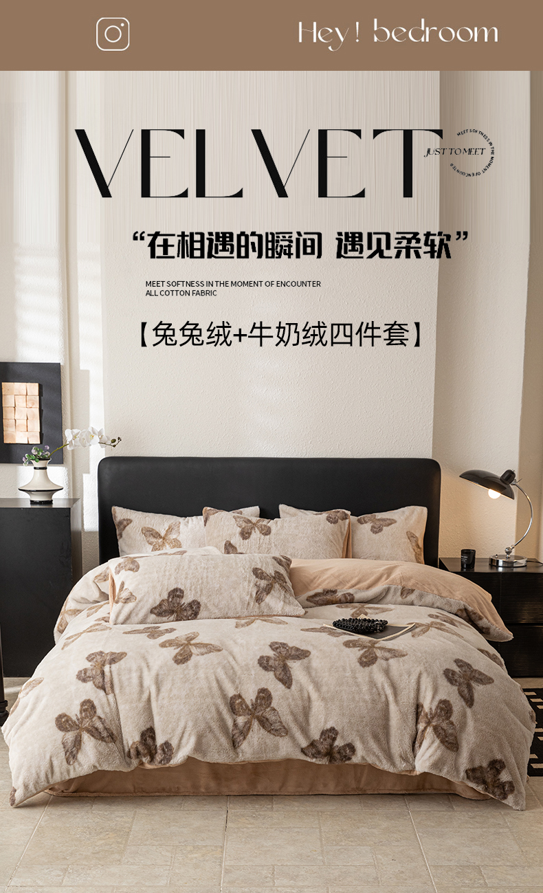 (总)女子家纺 2025新款印花兔兔绒+纯色牛奶绒双拼四件套