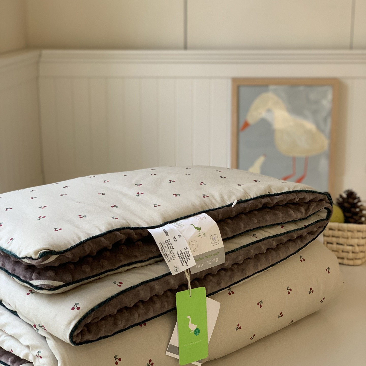 (总)汇庭 2025新款秋冬胖胖樱桃春秋被+樱桃菲菲床盖三件套,组合图下单仅供展示不可下单,粉色,绿色,米色