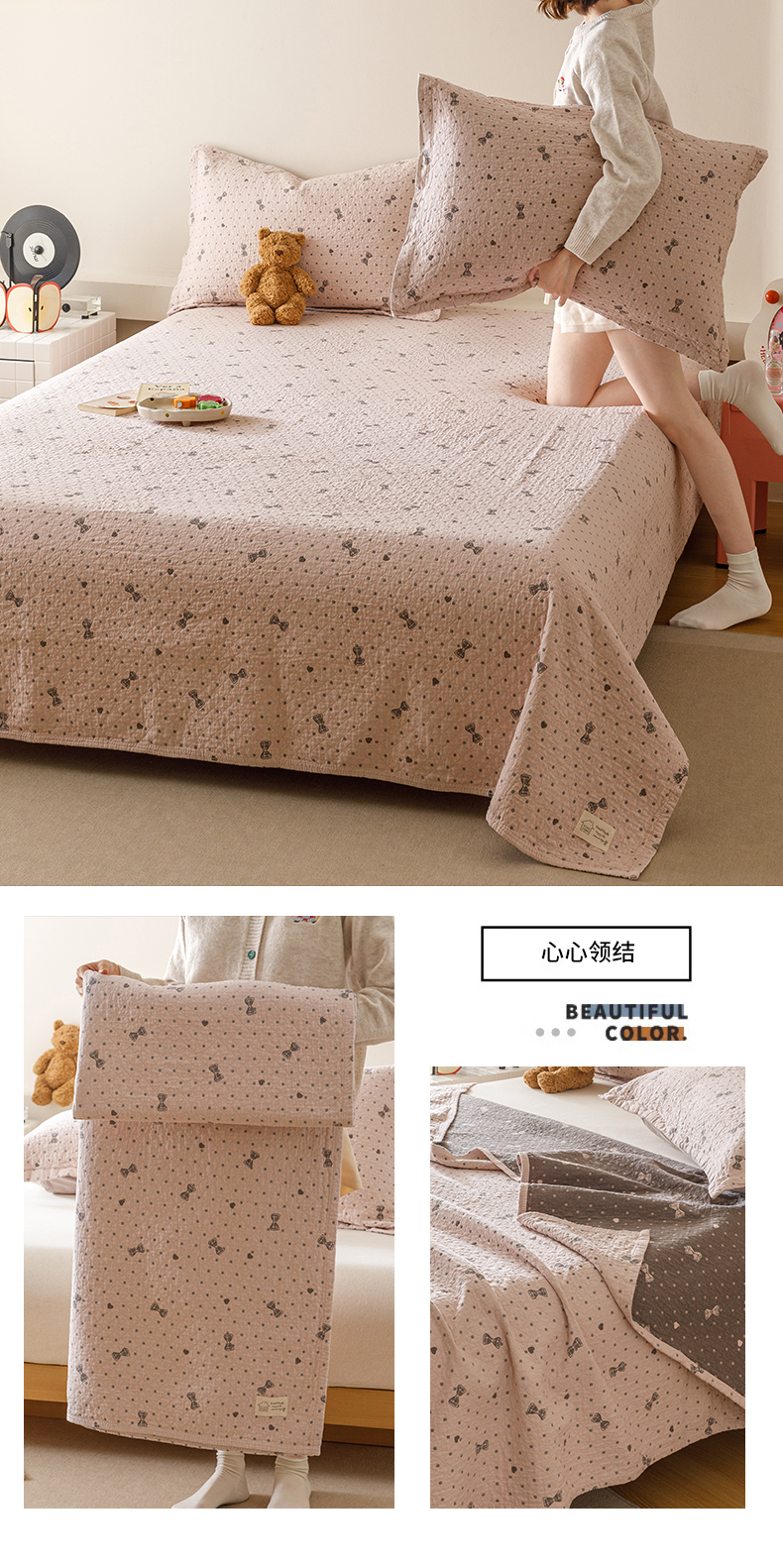 (总)麻依 2025新款韩国清新全棉纱布床盖三件套,憨憨熊,彩色南瓜,车厘子,两颗草莓,奶盖KT,奶油波点-灰,奶油彩点,水蓝KT,水墨花,丝带,桃心-米白,小猫鱼