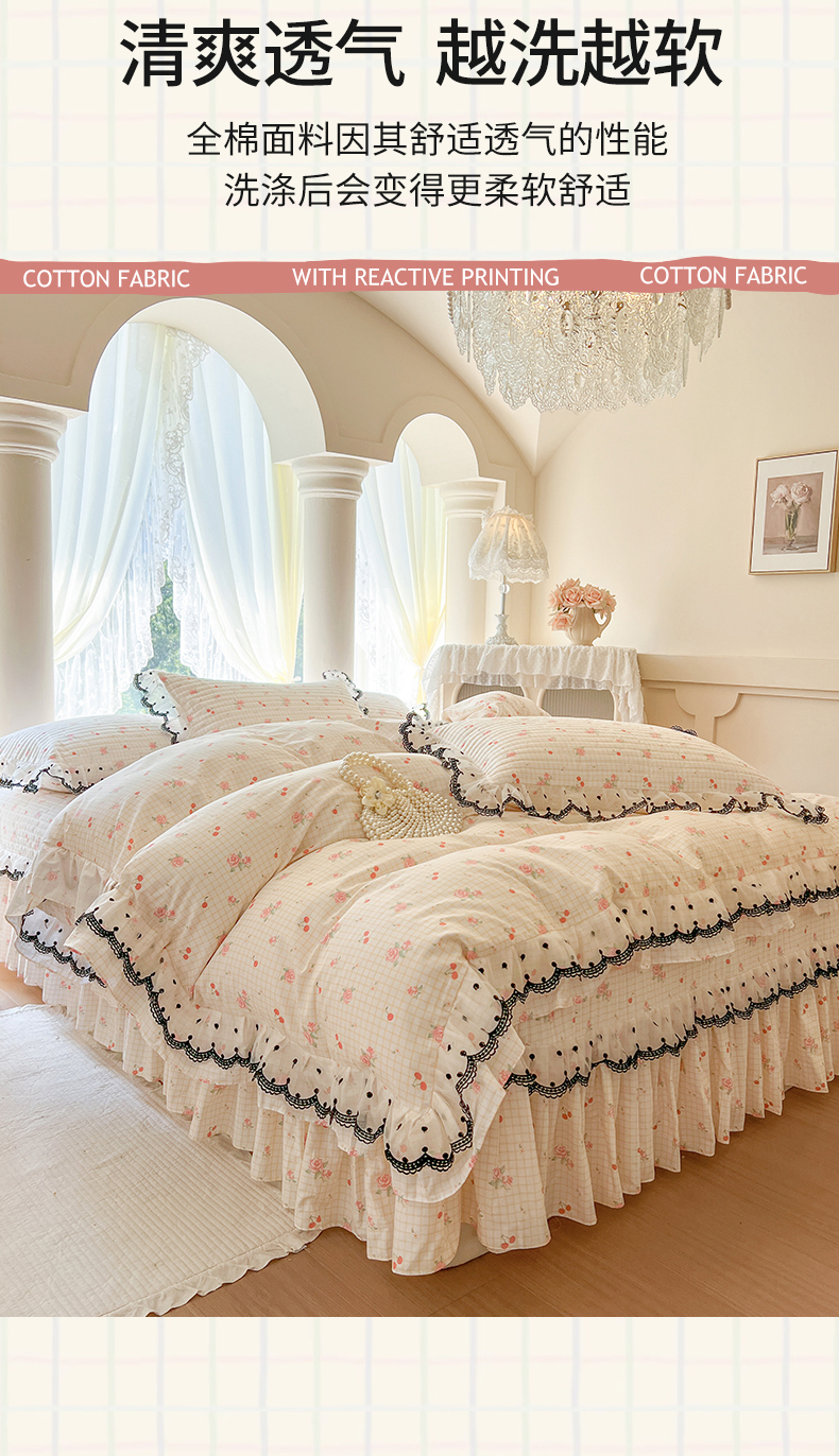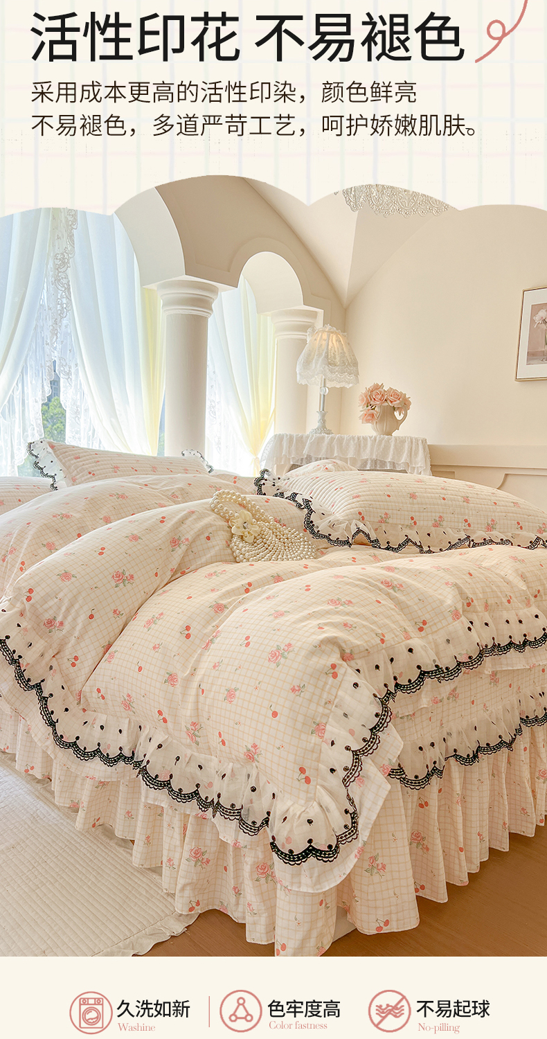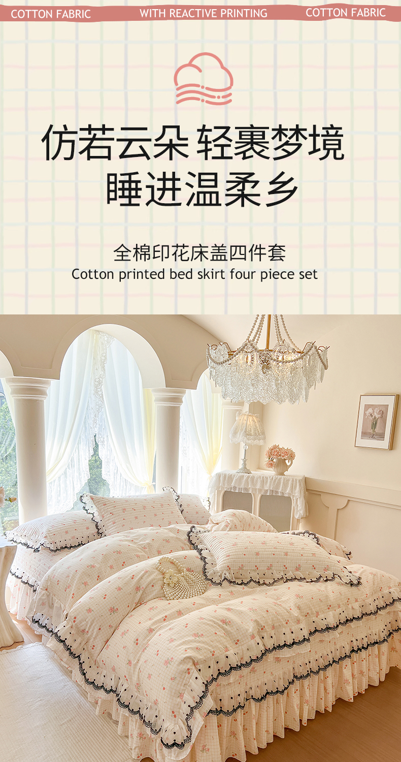当前位置: 91家纺网 > 商品网购 > 床品套件 > 四件套 > 全棉普通四件套 > 网红馆(ck家纺) 2025新款全棉印花床盖四件套 玫瑰樱桃
