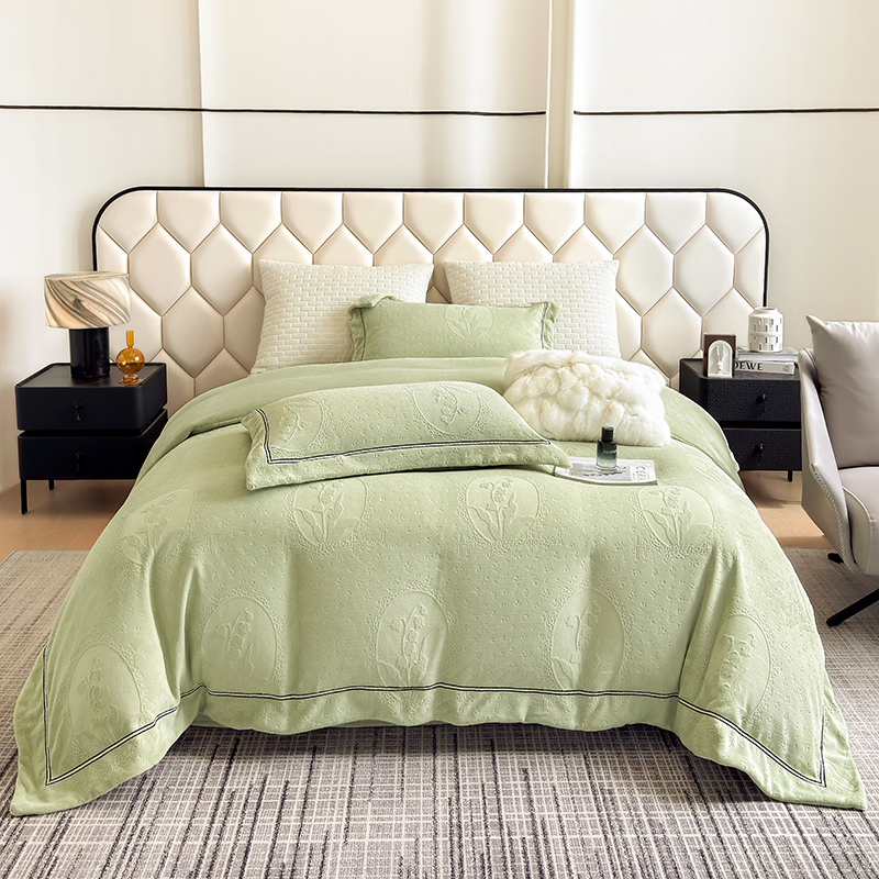 (总)若未家居 2023 新款高支高密长绒棉进口镂空款四件套 -爱法,橄榄绿,贵族红,皓月白,湖水蓝,羊脂玉
