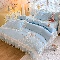 商品名称:漫布云2026秋冬新款11斤230g全消光牛奶绒夹棉床盖款四件套纯色蕾丝花边刺绣床裙款床盖 蝶恋花-婴儿蓝