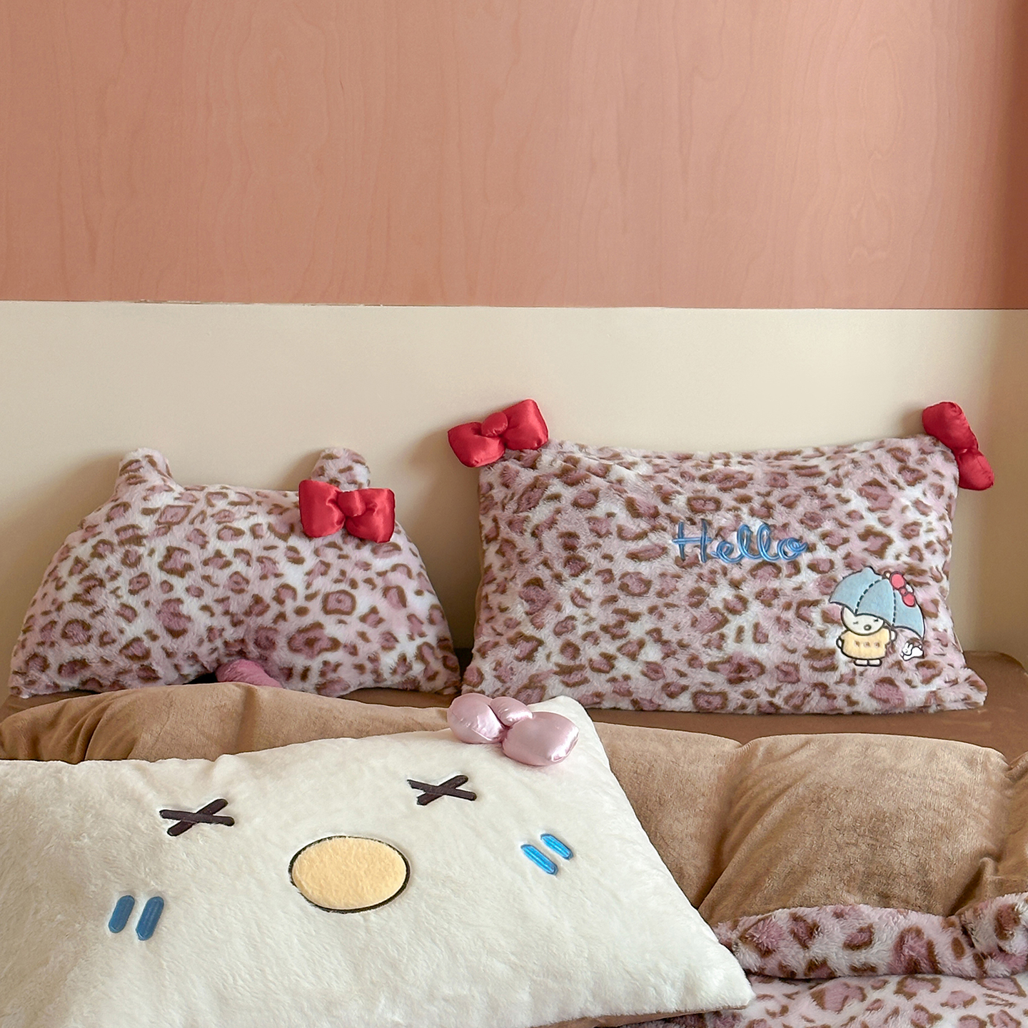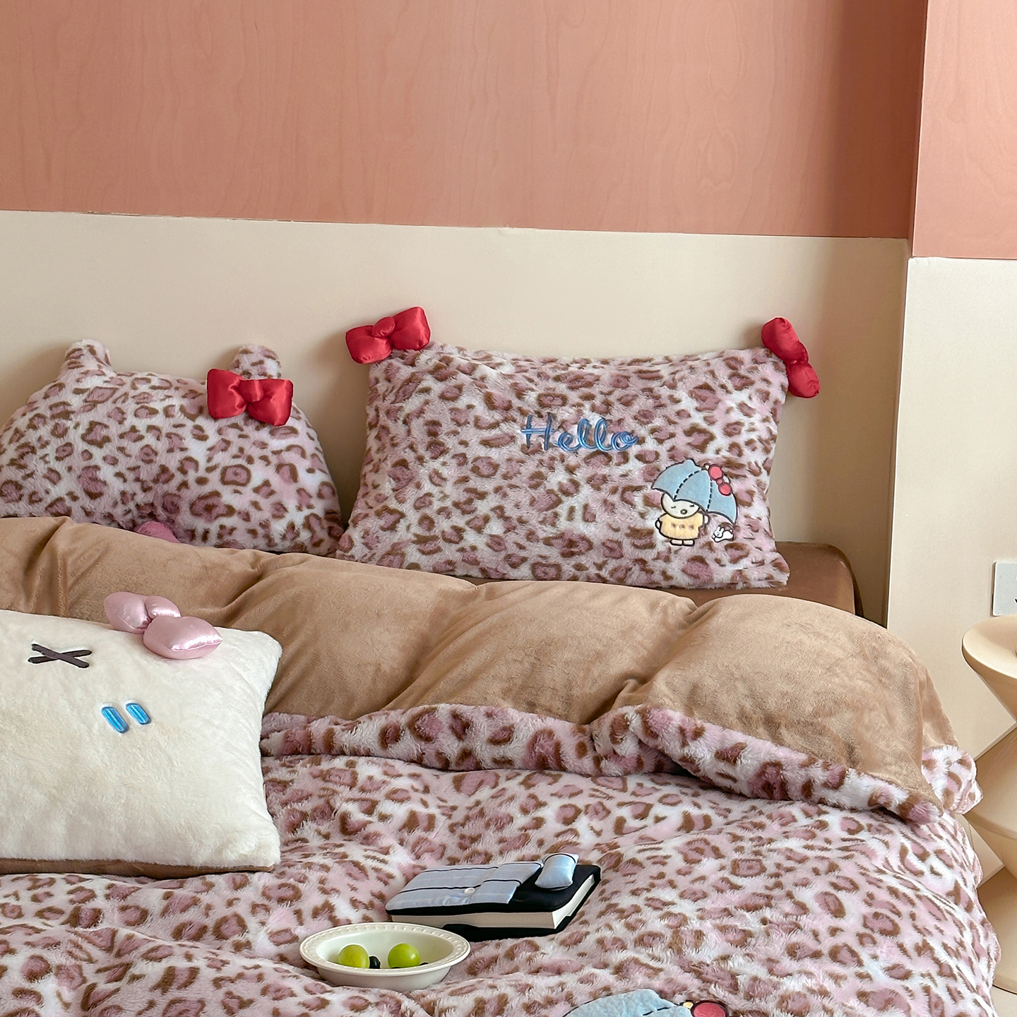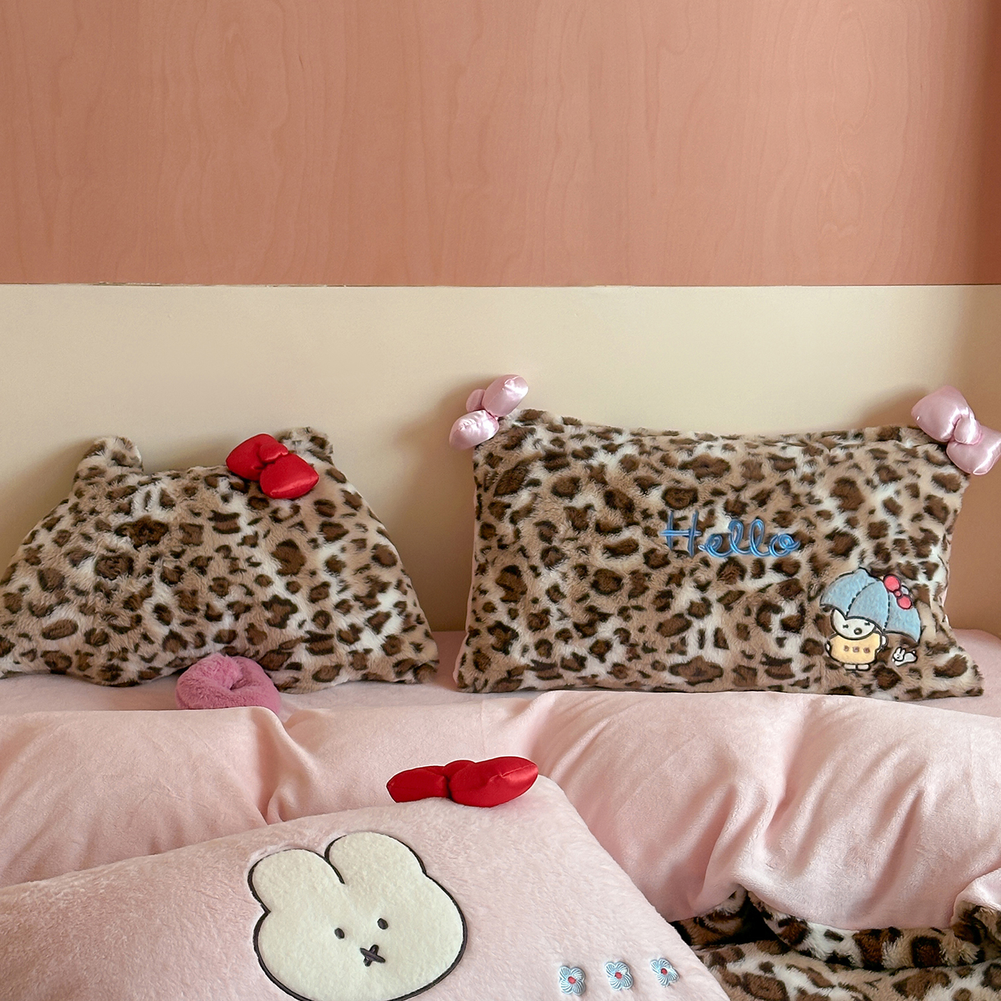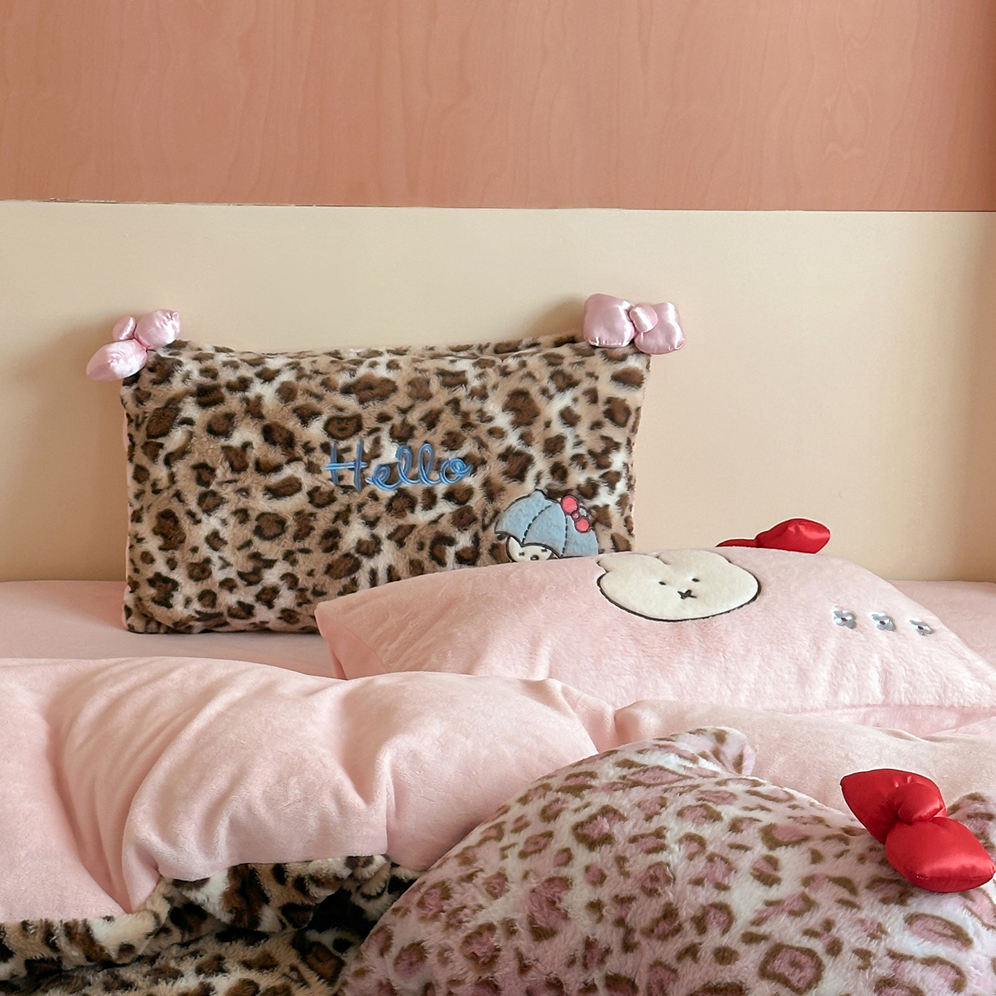 商品名称:桔子家纺 2025新款兔兔绒牛奶绒豹纹系列卡通绣花四件套 兔兔粉bao