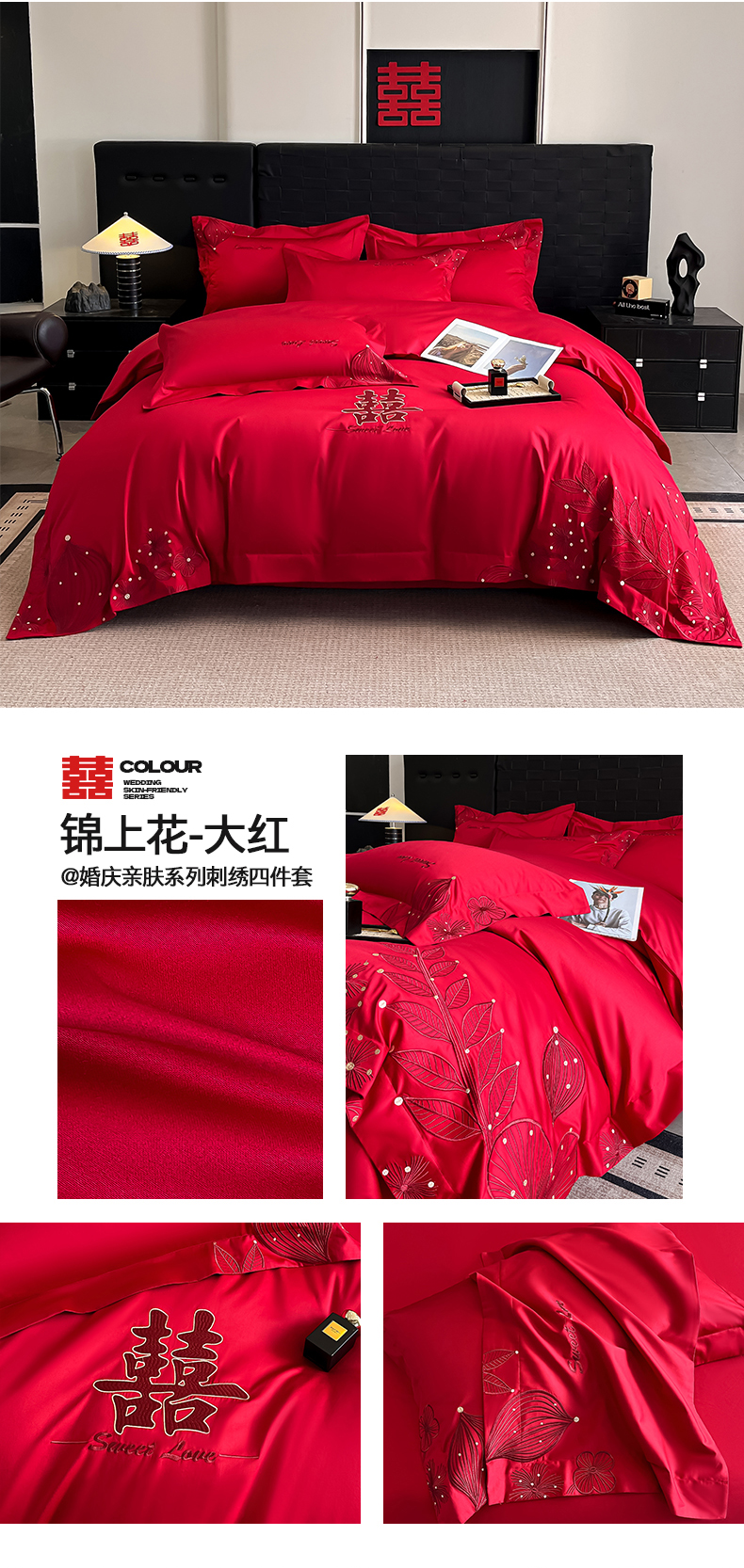 商品名称:(总)置顶家纺 2025新款亲肤刺绣婚庆四件套