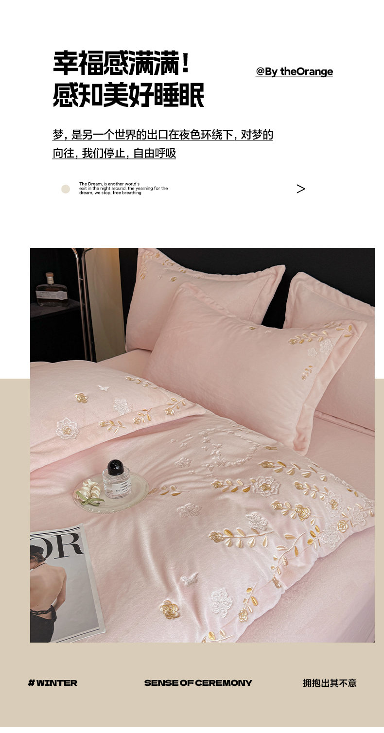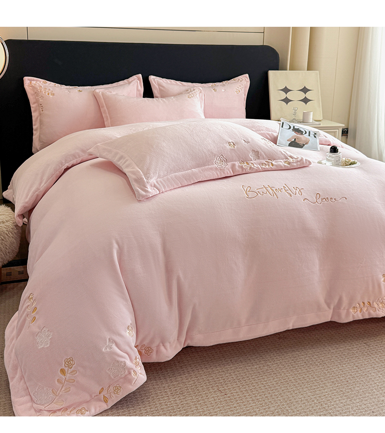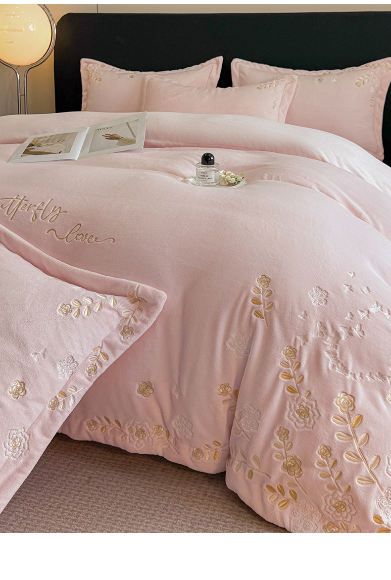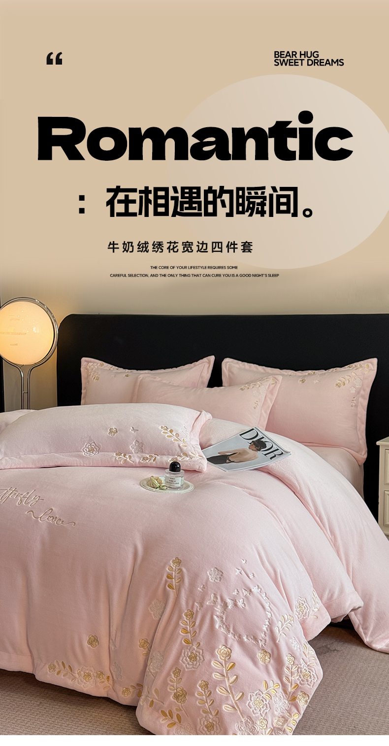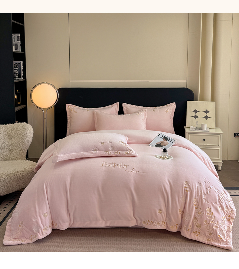 当前位置: 91家纺网 > 商品网购 > 床品套件 > 四件套 > 牛奶绒四件套 > 博纳家纺 2025新款加厚牛奶绒绣花宽边四件套-洛可可 洛可可-粉玉