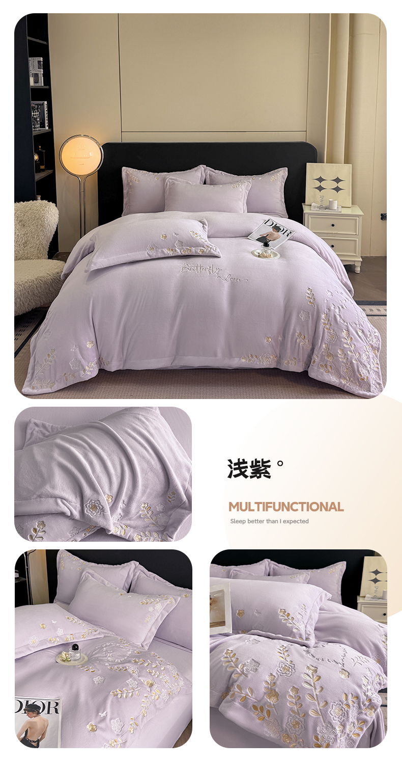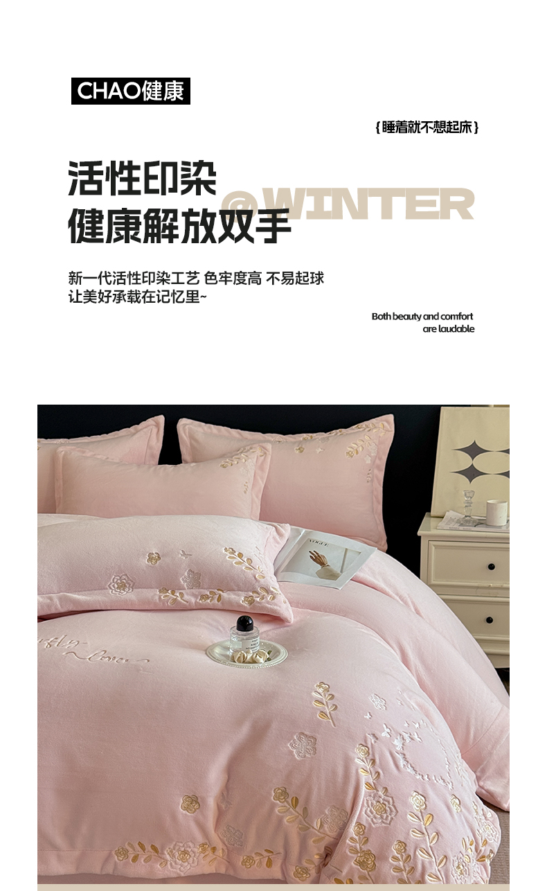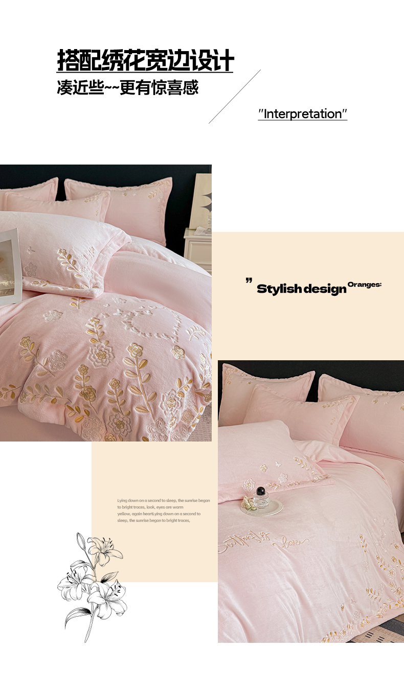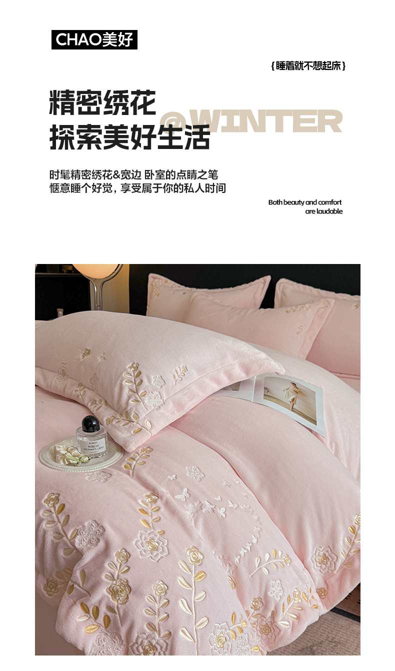 当前位置: 91家纺网 > 商品网购 > 床品套件 > 四件套 > 牛奶绒四件套 > 博纳家纺 2025新款加厚牛奶绒绣花宽边四件套-洛可可 洛可可-粉玉
