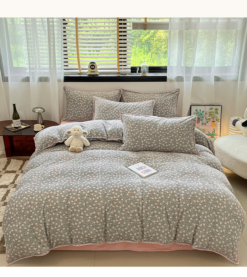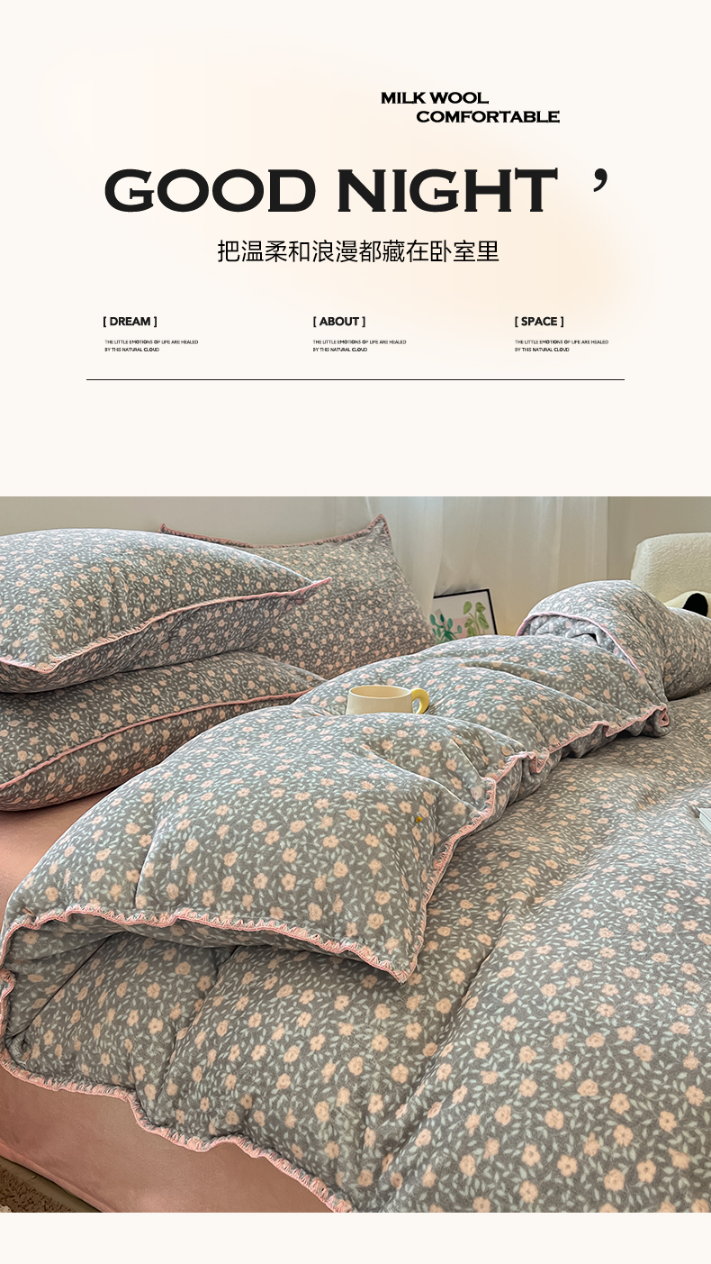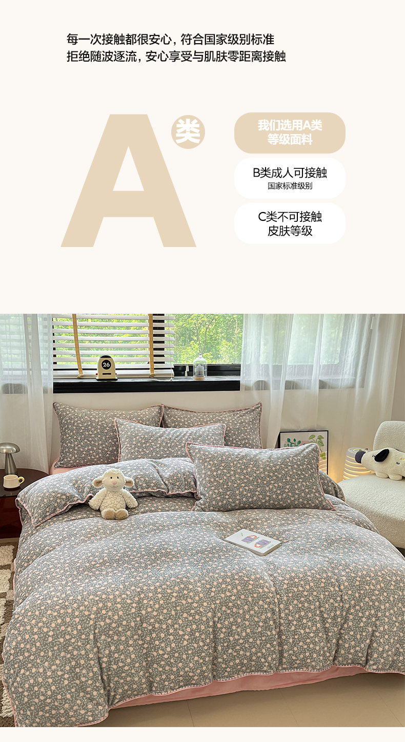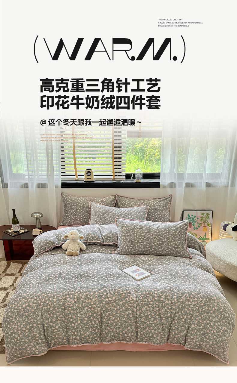 如一 2025新款A类高克重牛奶绒印花三角针工艺四件套 芒种