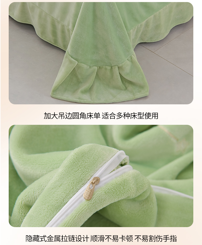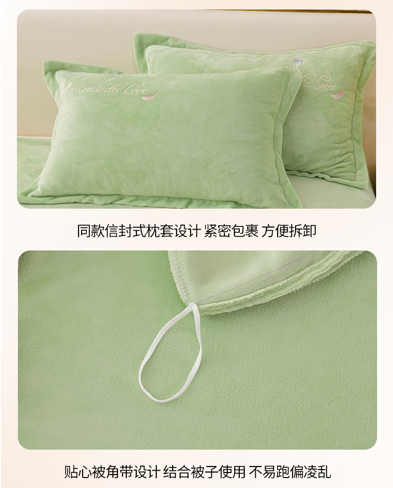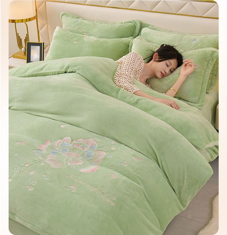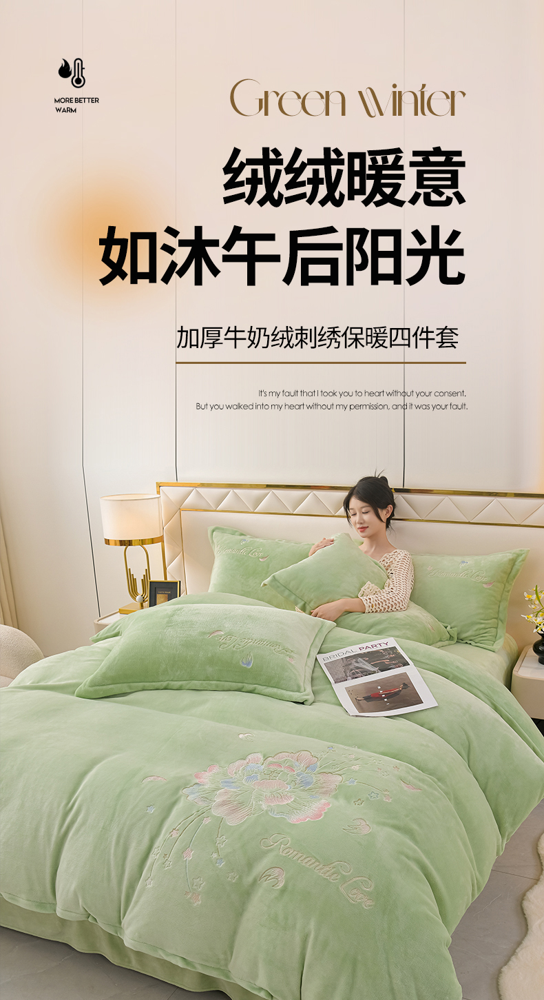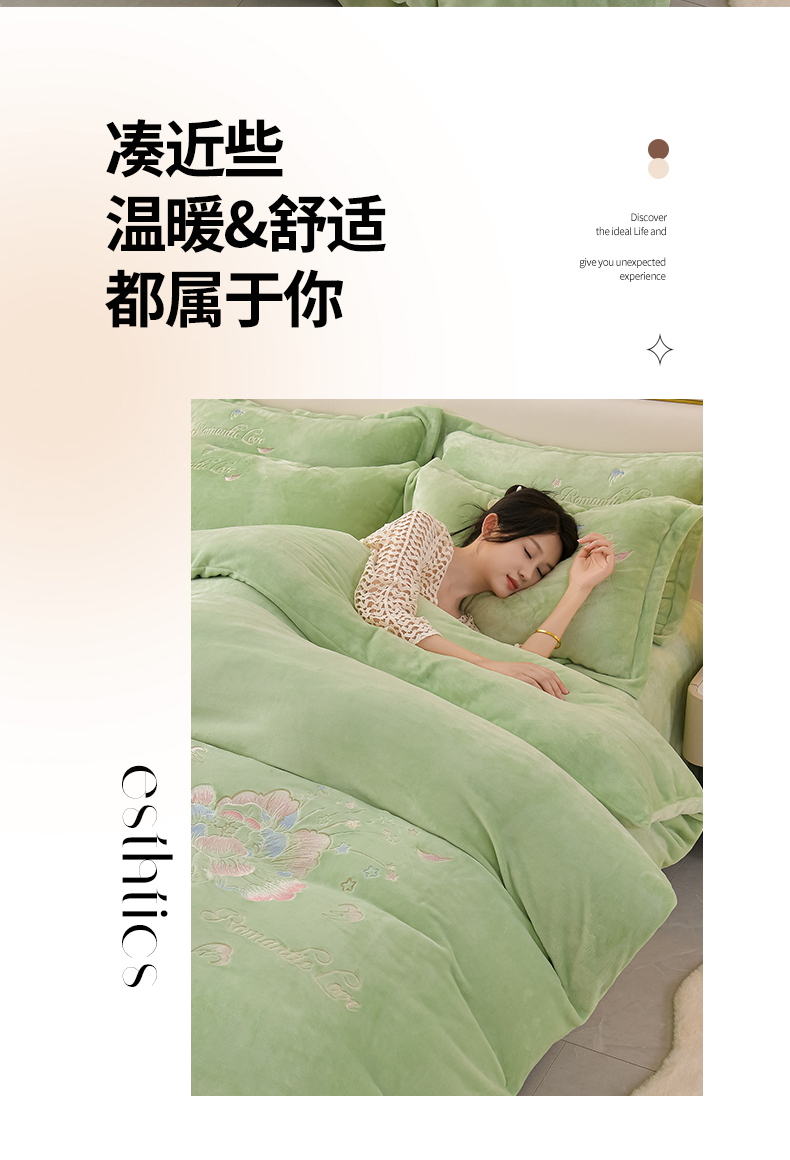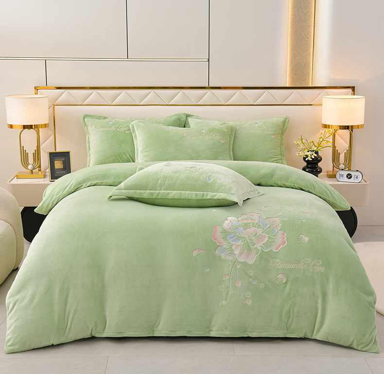 商品名称:绒小宣 2025新款加厚牛奶绒刺绣花保暖四件套-花开富贵提供买家秀 花开富贵-抹茶绿
