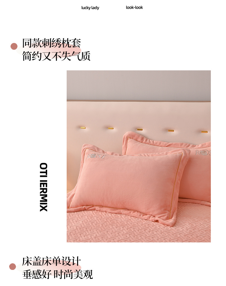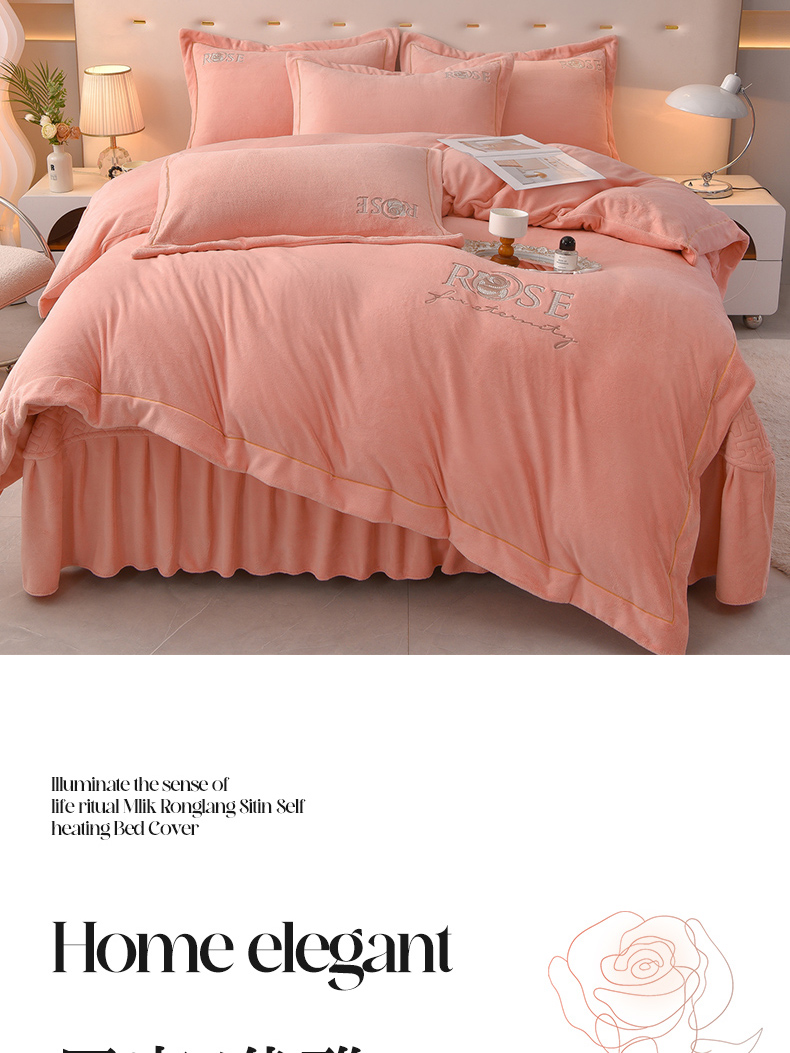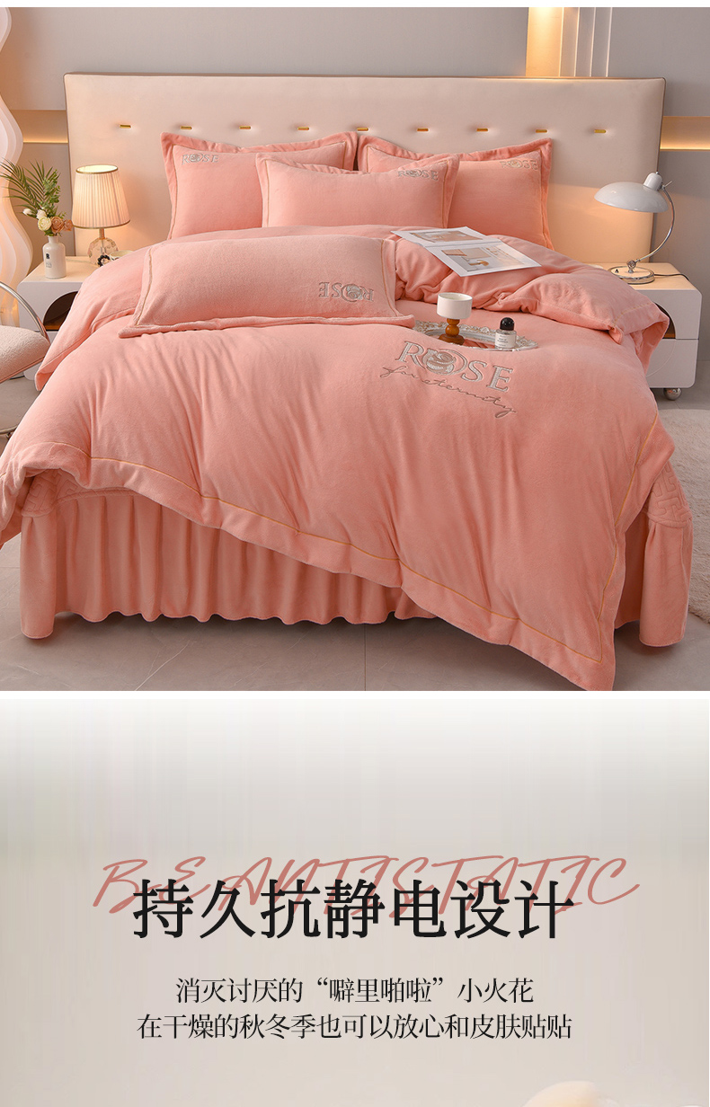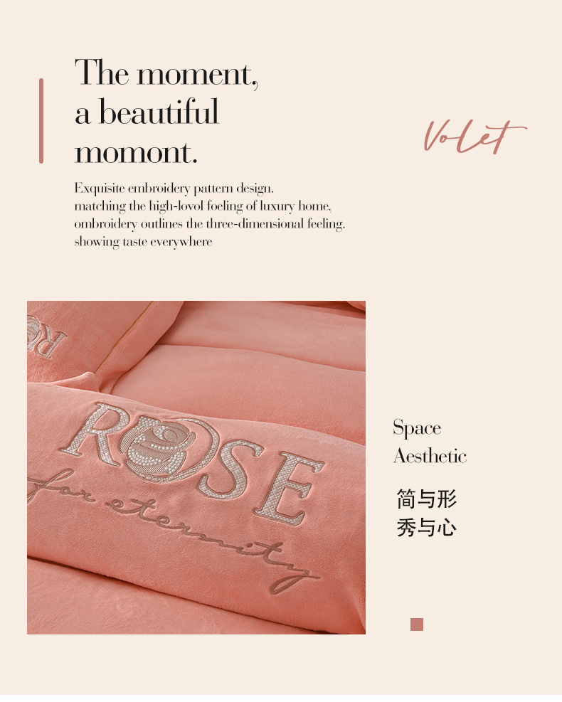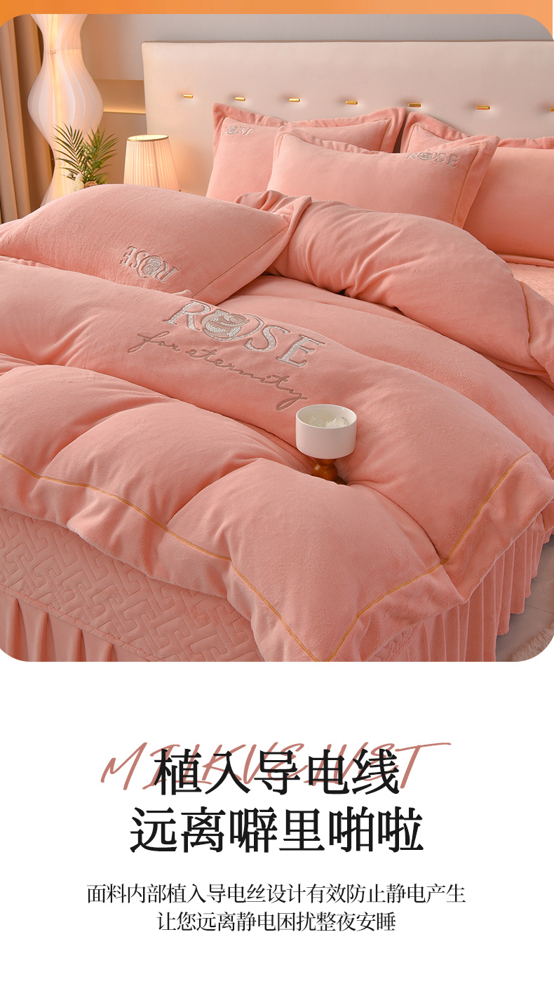 商品名称:绒小宣 2025新款加厚牛奶绒四件套宽边一字绣牛奶绒刺绣花夹棉床盖款四件套-玫瑰花语 玫瑰花语-粉色