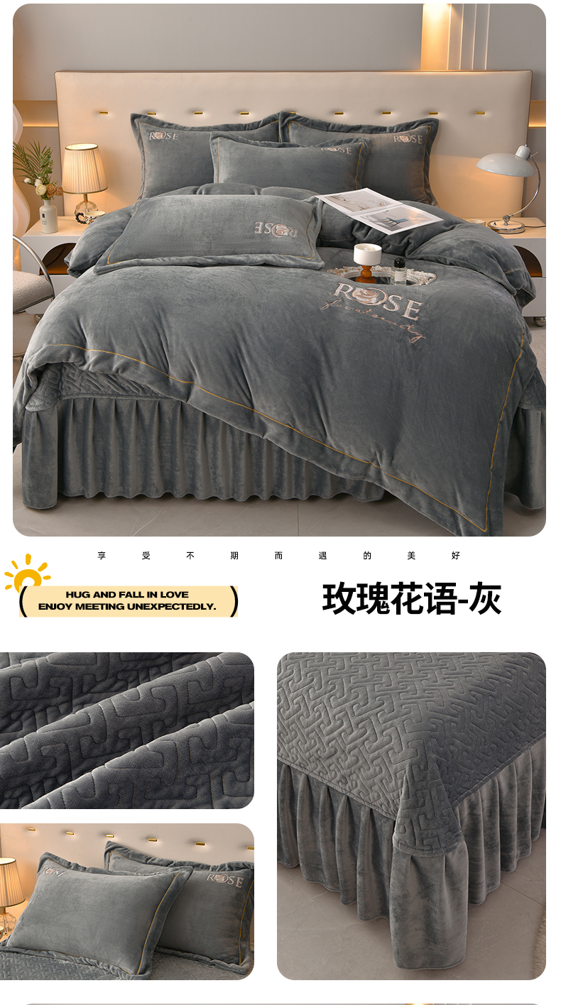 (总)绒小宣 2025新款加厚牛奶绒四件套宽边一字绣牛奶绒刺绣花夹棉床盖款四件套-玫瑰花语,玫瑰花语-紫色,玫瑰花语-橙色,玫瑰花语-粉色,玫瑰花语-高级灰,玫瑰花语-绿色