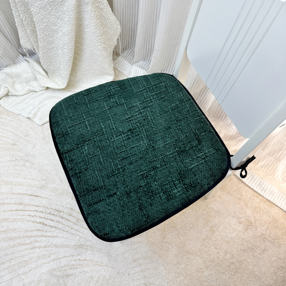 爱家居 2025新款餐椅垫坐垫轻奢马蹄形四季通用雪尼尔防滑纯色椅子垫餐厅家用可拆洗【纯色雪尼尔坐垫常规有现货、其它规格可定制】 雪尼尔—墨绿色
