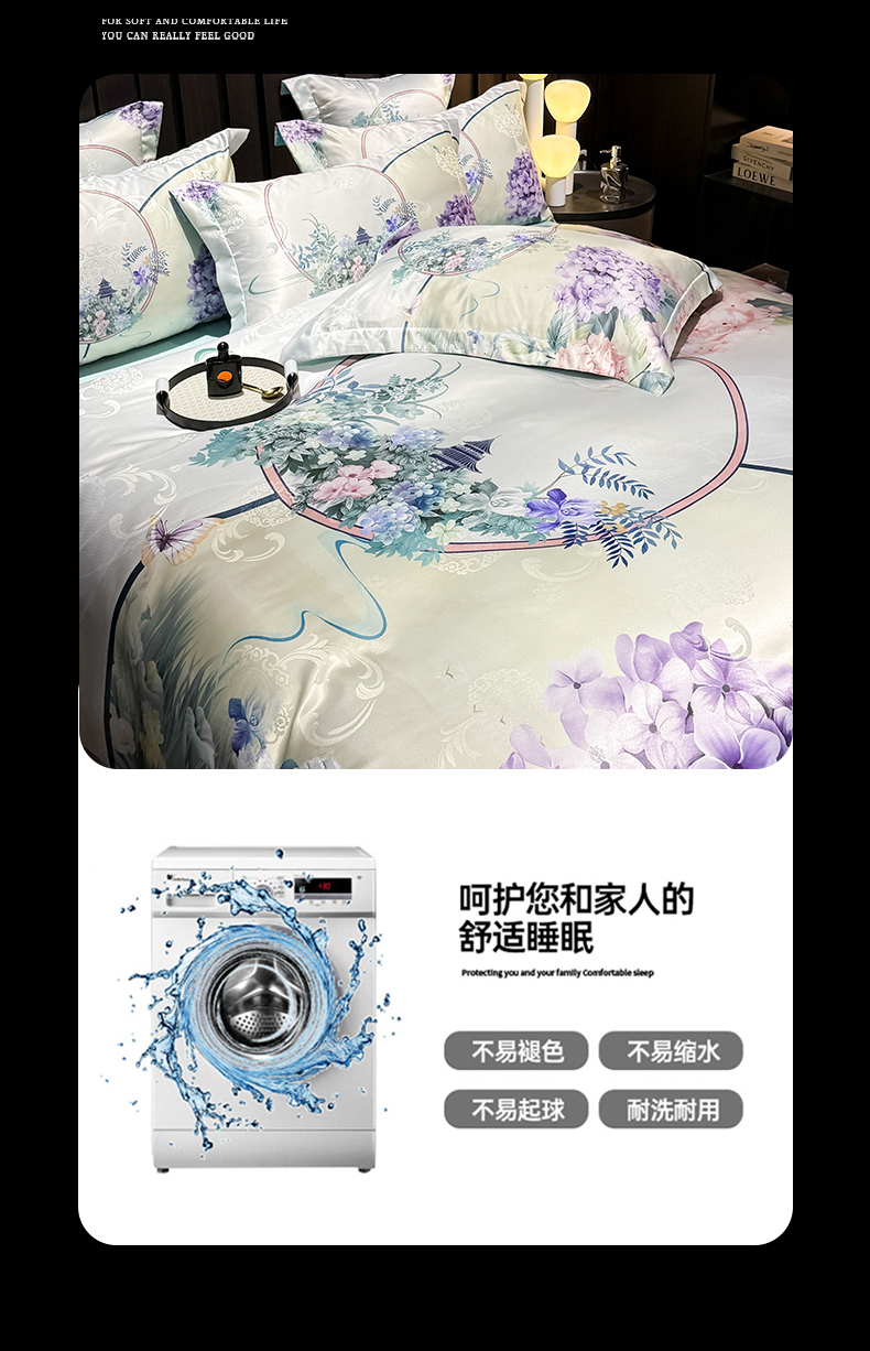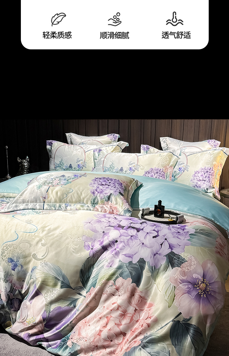 七夜居 2025新款直播爆款欧式大阪轻奢贡缎提花加数码印花磨毛四件套 绣球花语