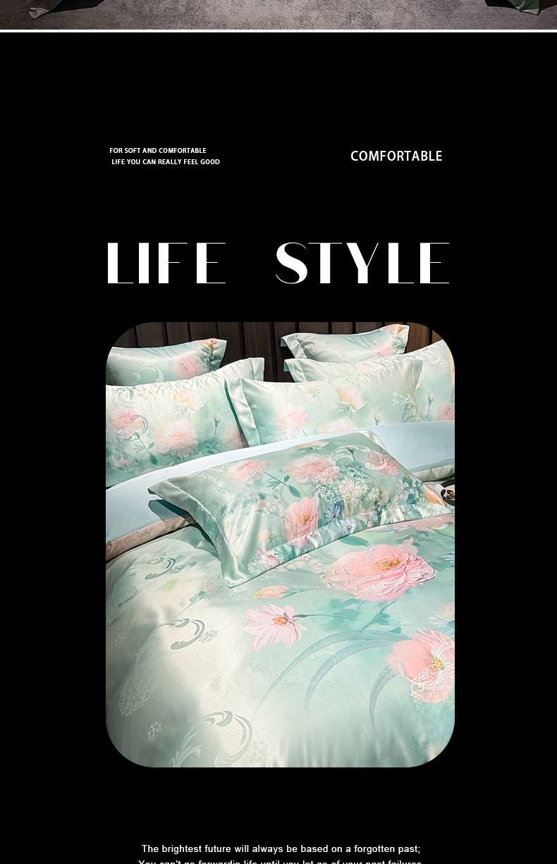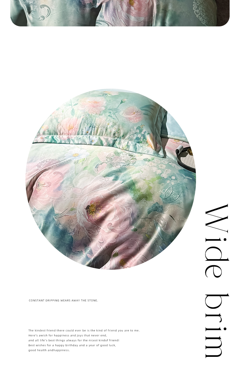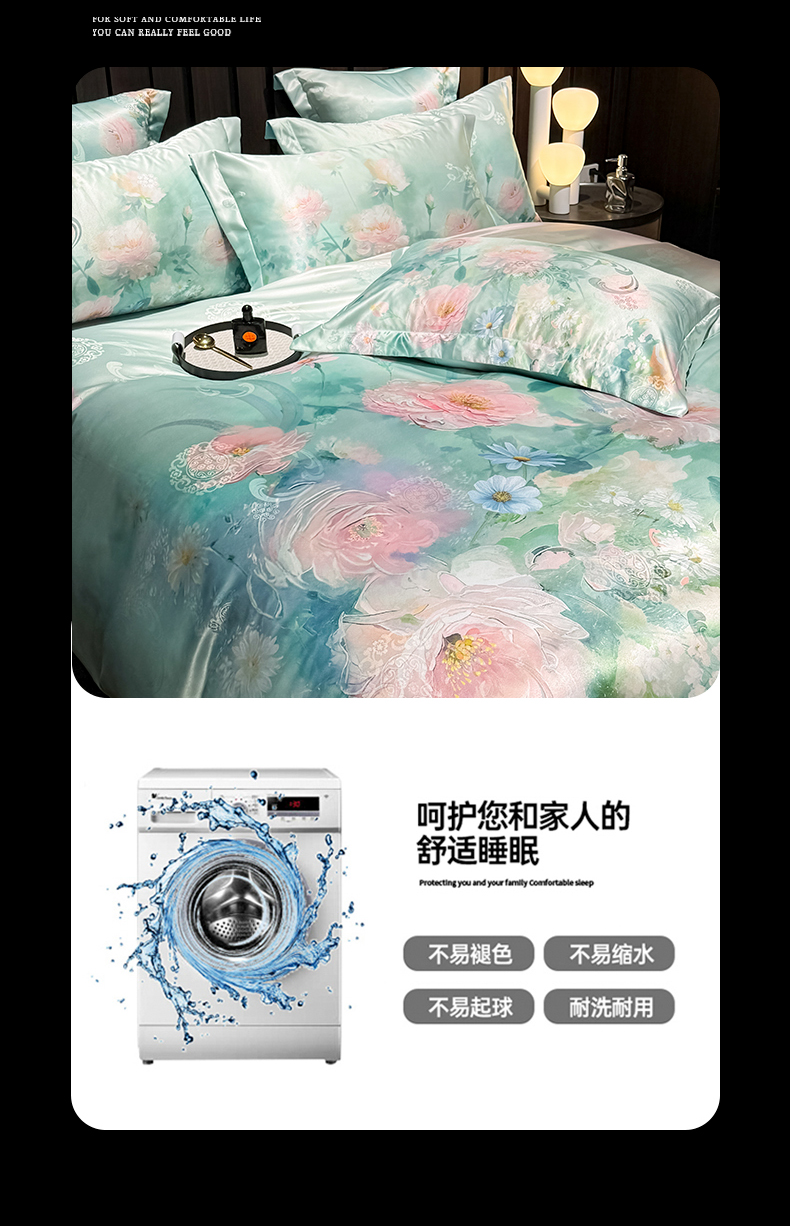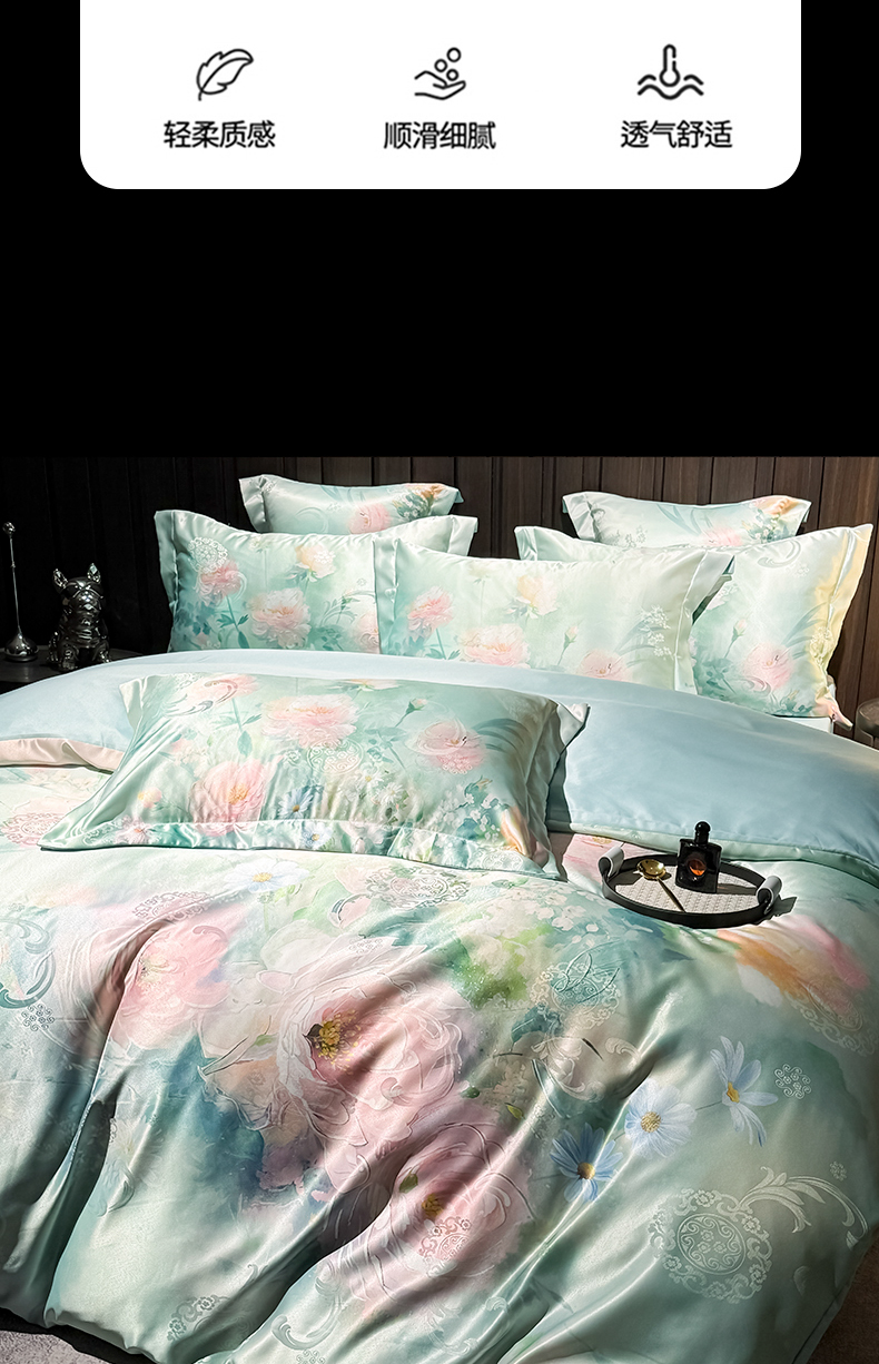 七夜居 2025新款直播爆款欧式大阪轻奢贡缎提花加数码印花磨毛四件套 清雅入梦