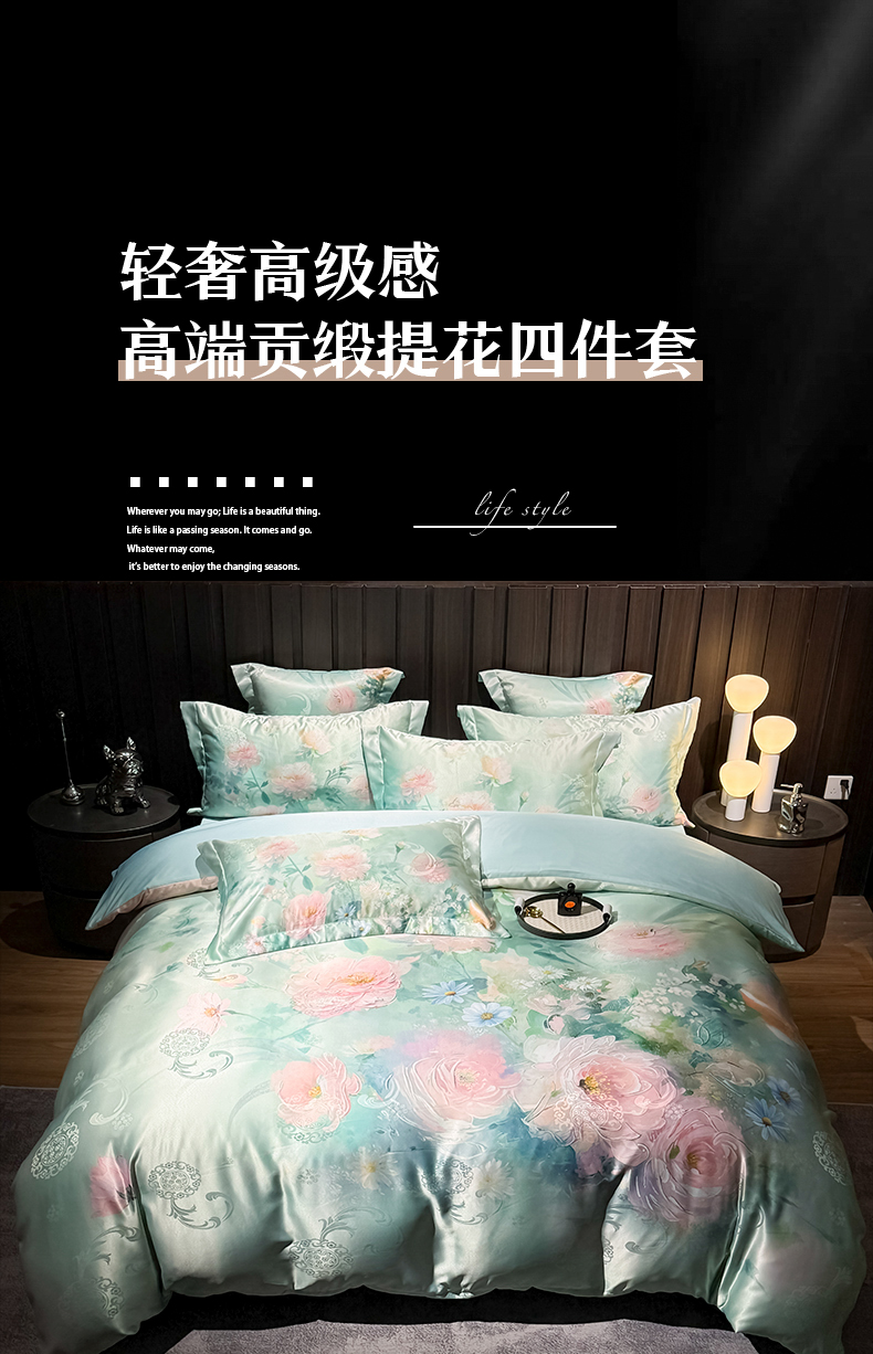 (总)七夜居 2025新款欧式轻奢高精密色织贡缎提花四件套礼盒装,一曲,繁茂,飞绒落羽,幻境,莫离,踏山河,波尔塔,长相思,莱肯,摩登都市,海蓝之心,锦绣年华,牡丹盛世,牡丹之歌,一叶知秋