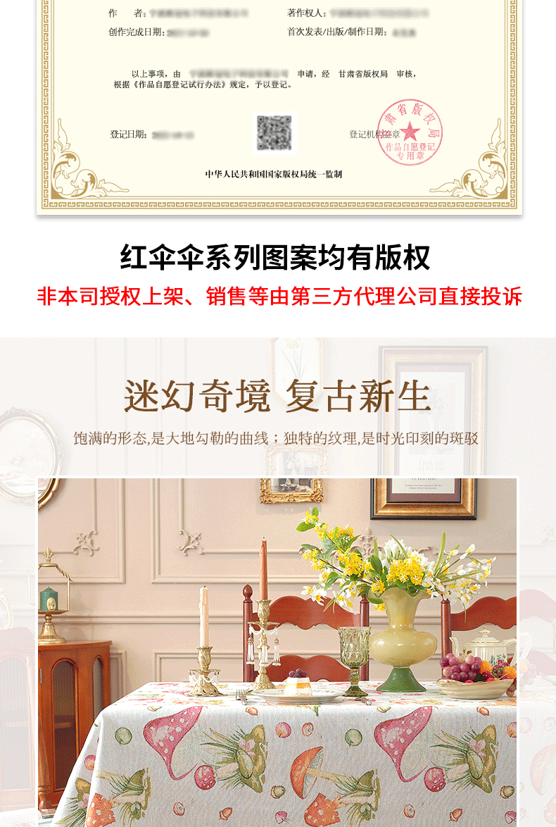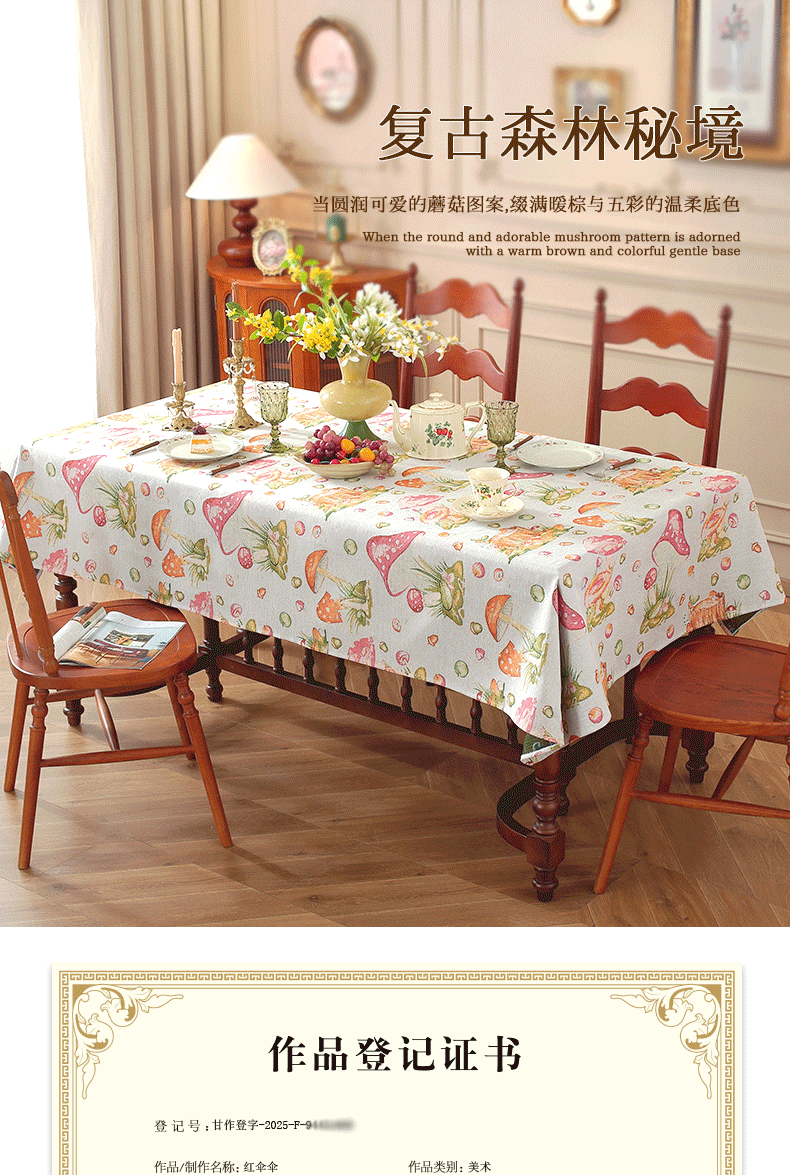 商品名称:(总)南通大梧纺织 2025新款复古森林秘境红伞伞桌布