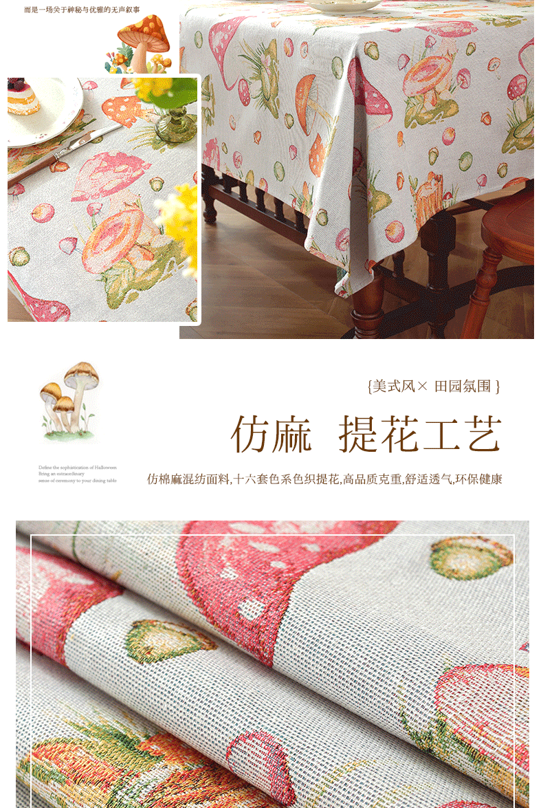 (总)南通大梧纺织 2025新款复古森林秘境黑蘑菇园桌布,黑蘑菇园 140*140cm,黑蘑菇园 100*160cm,黑蘑菇园 140*180cm,黑蘑菇园 140*200cm,黑蘑菇园 140*220cm,黑蘑菇园 140*260cm
