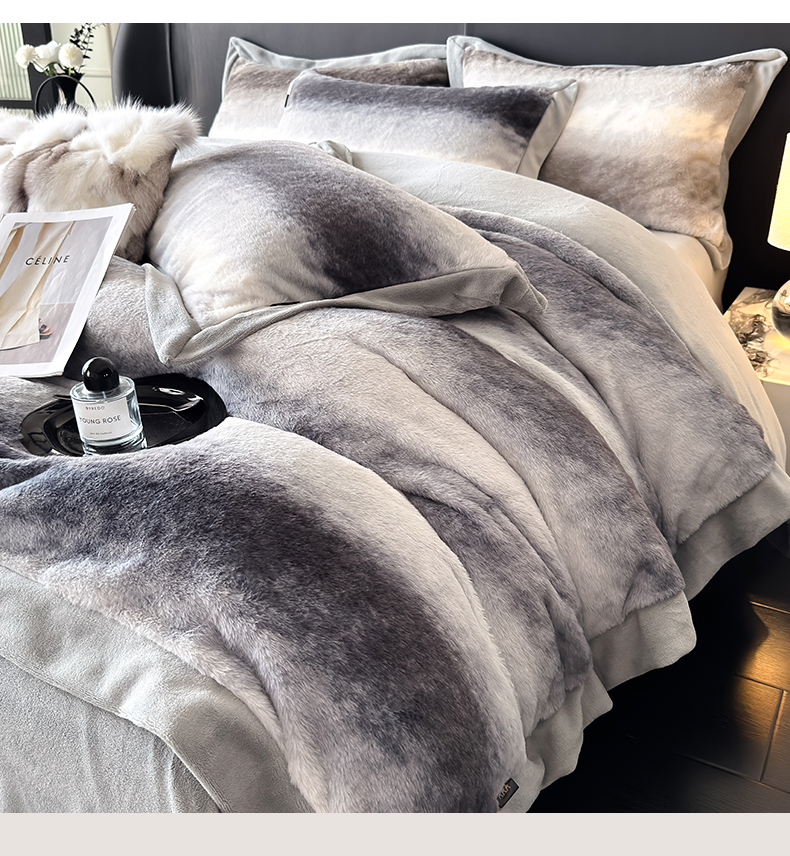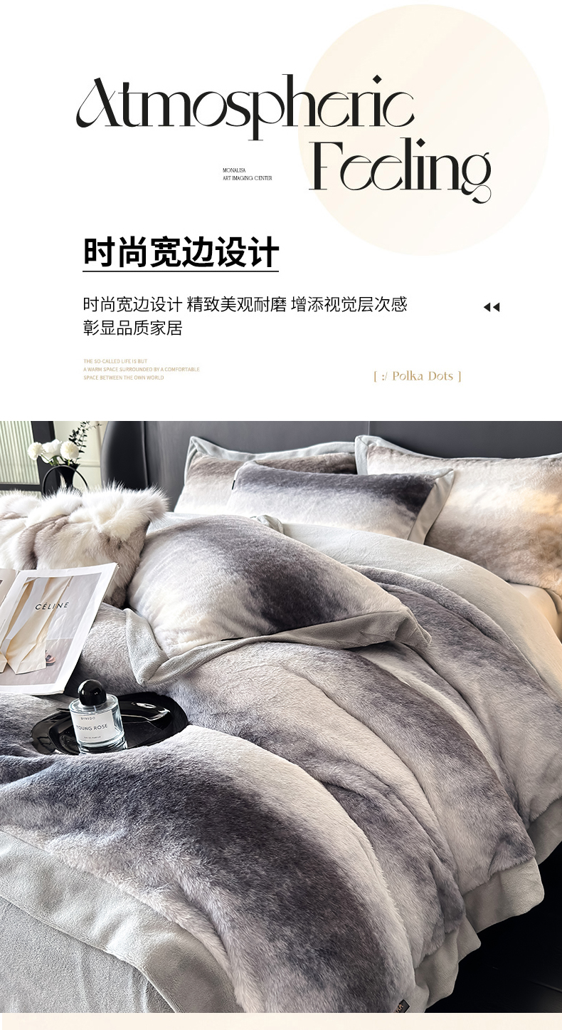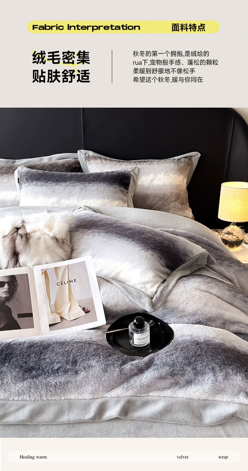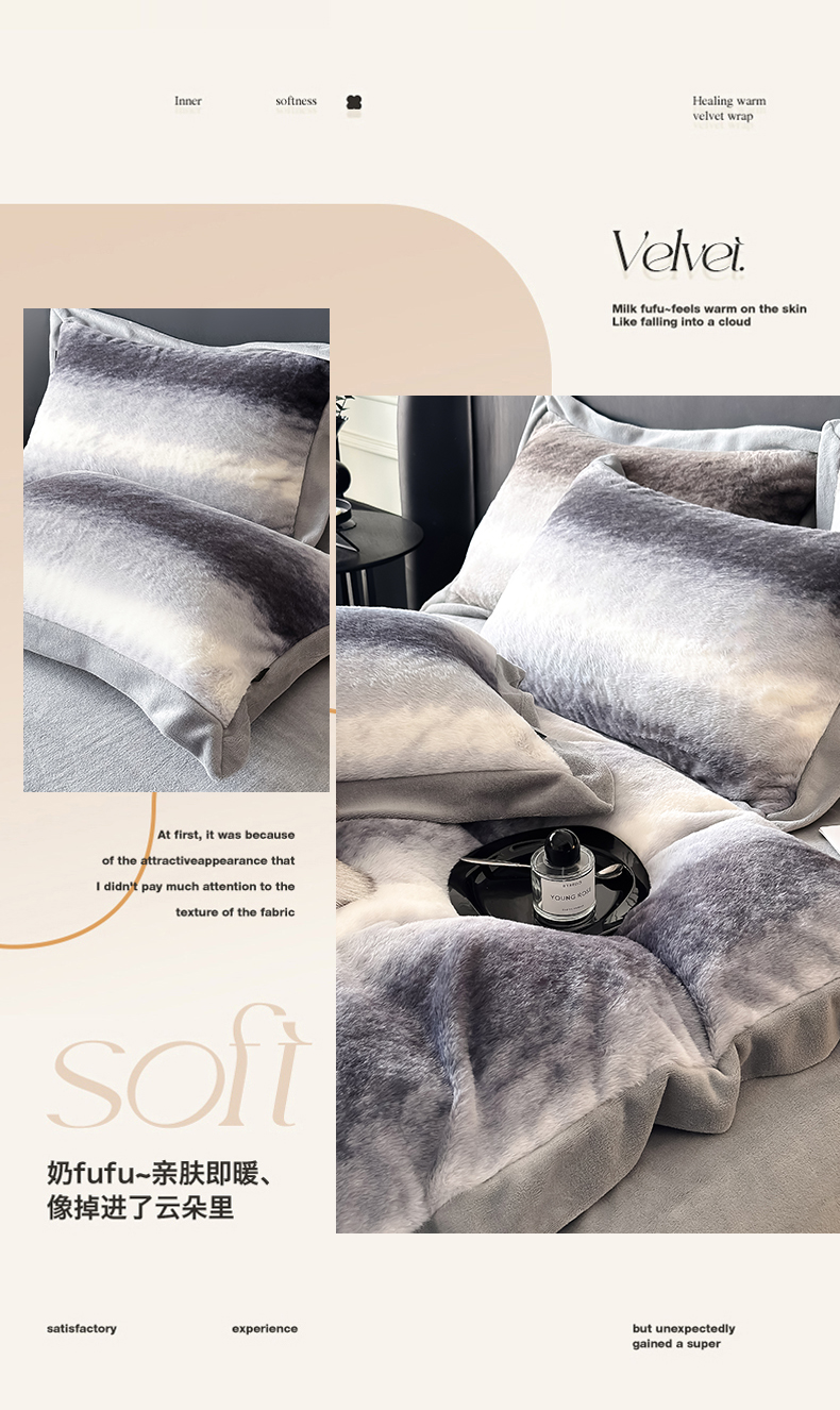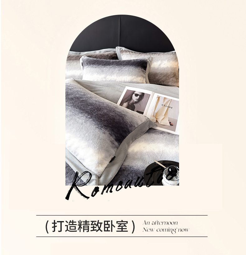 (总)水云缦 2025新款美拉德系列兔毛拼角四件套,美拉德-渐变灰,美拉德-渐变粉,美拉德-渐变咖,美拉德-渐变卡其,美拉德-渐变蓝
