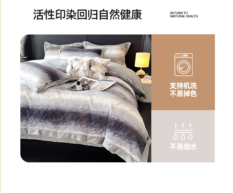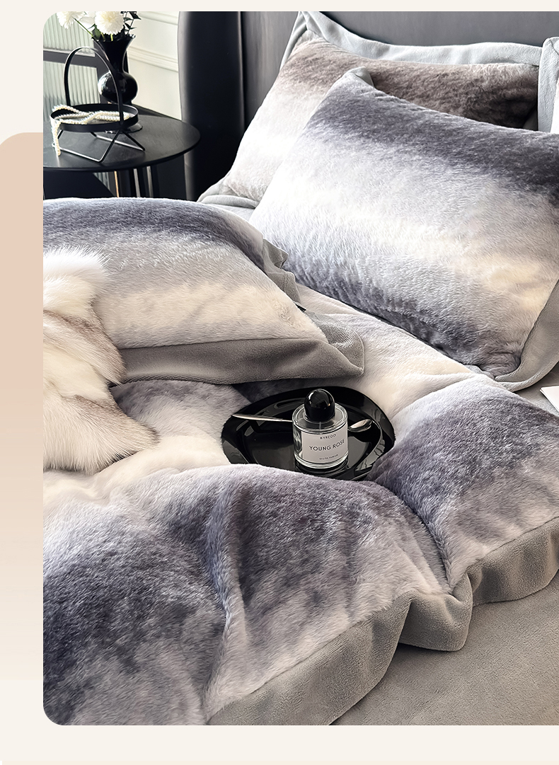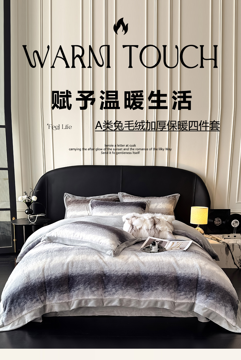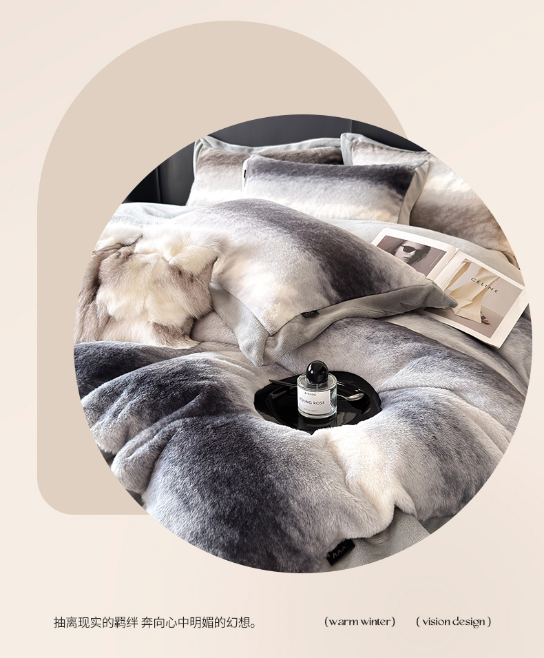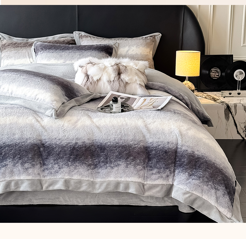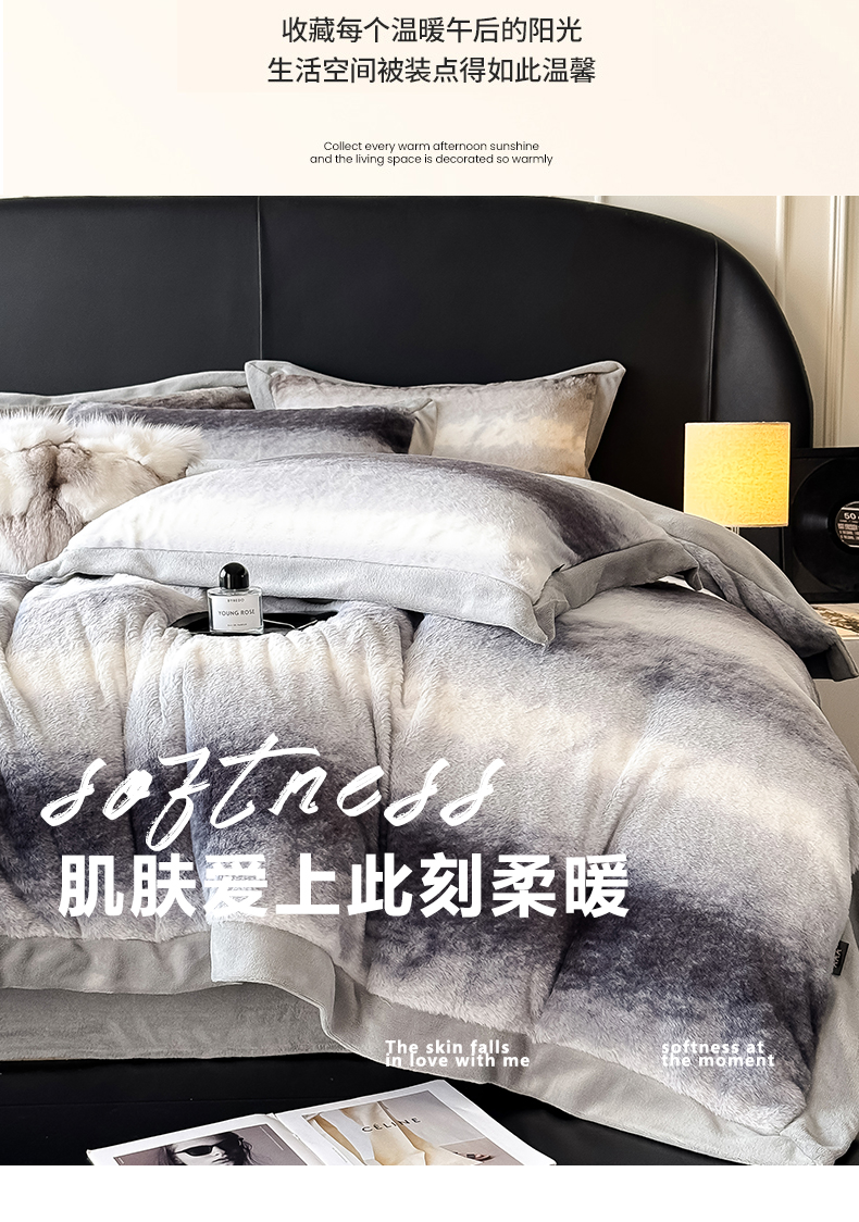 (总)水云缦 2025新款美拉德系列兔毛拼角四件套,美拉德-渐变灰,美拉德-渐变粉,美拉德-渐变咖,美拉德-渐变卡其,美拉德-渐变蓝