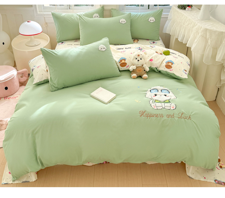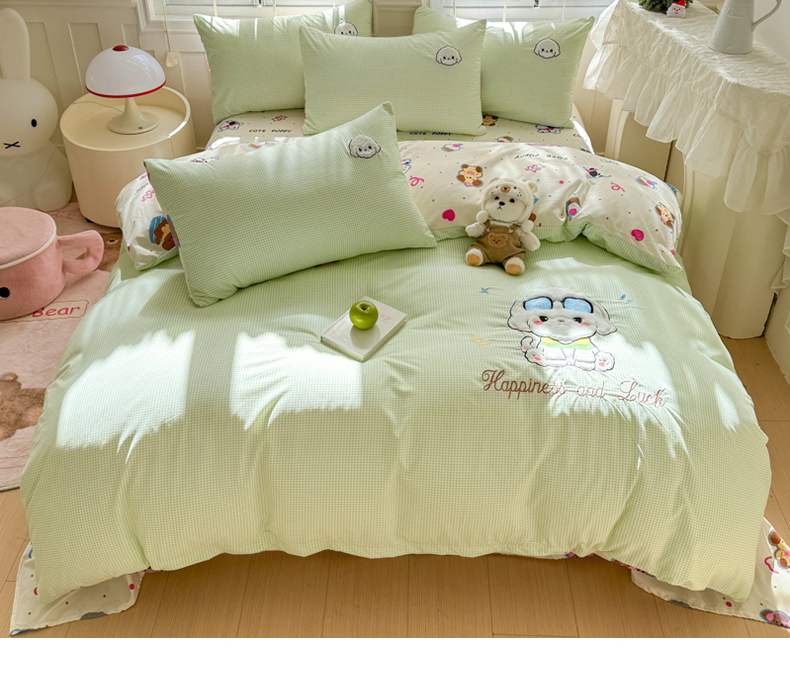 商品名称:悦兴家纺 2025新款A类水洗棉治愈萌犬系列四件套(含买家秀) 绿格学院狗狗