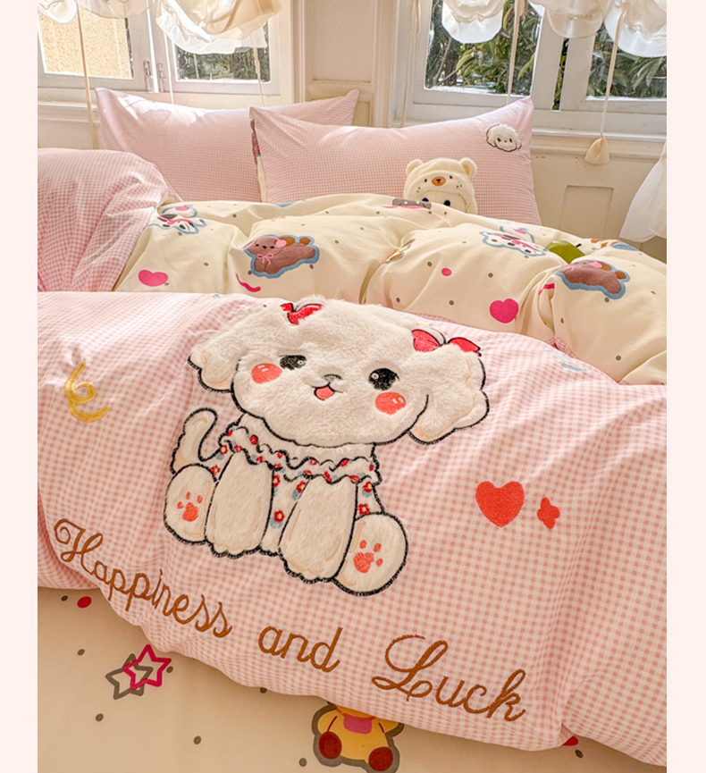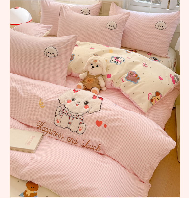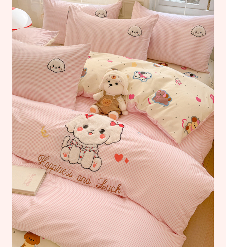 (总)悦兴家纺 2025新款A类水洗棉治愈萌犬系列四件套(含买家秀),粉格蝴蝶狗,蓝格多duo狗狗,绿格学院狗狗,奶粉蝴蝶狗,奶蓝多duo狗狗,奶绿学院狗狗