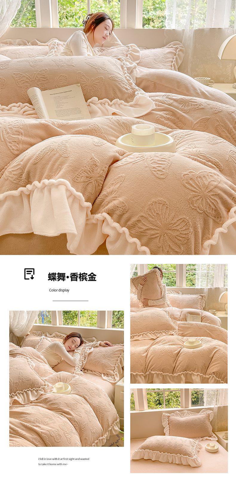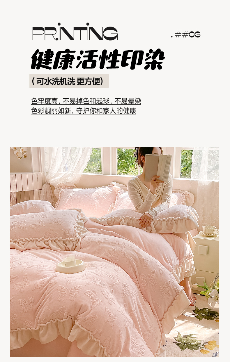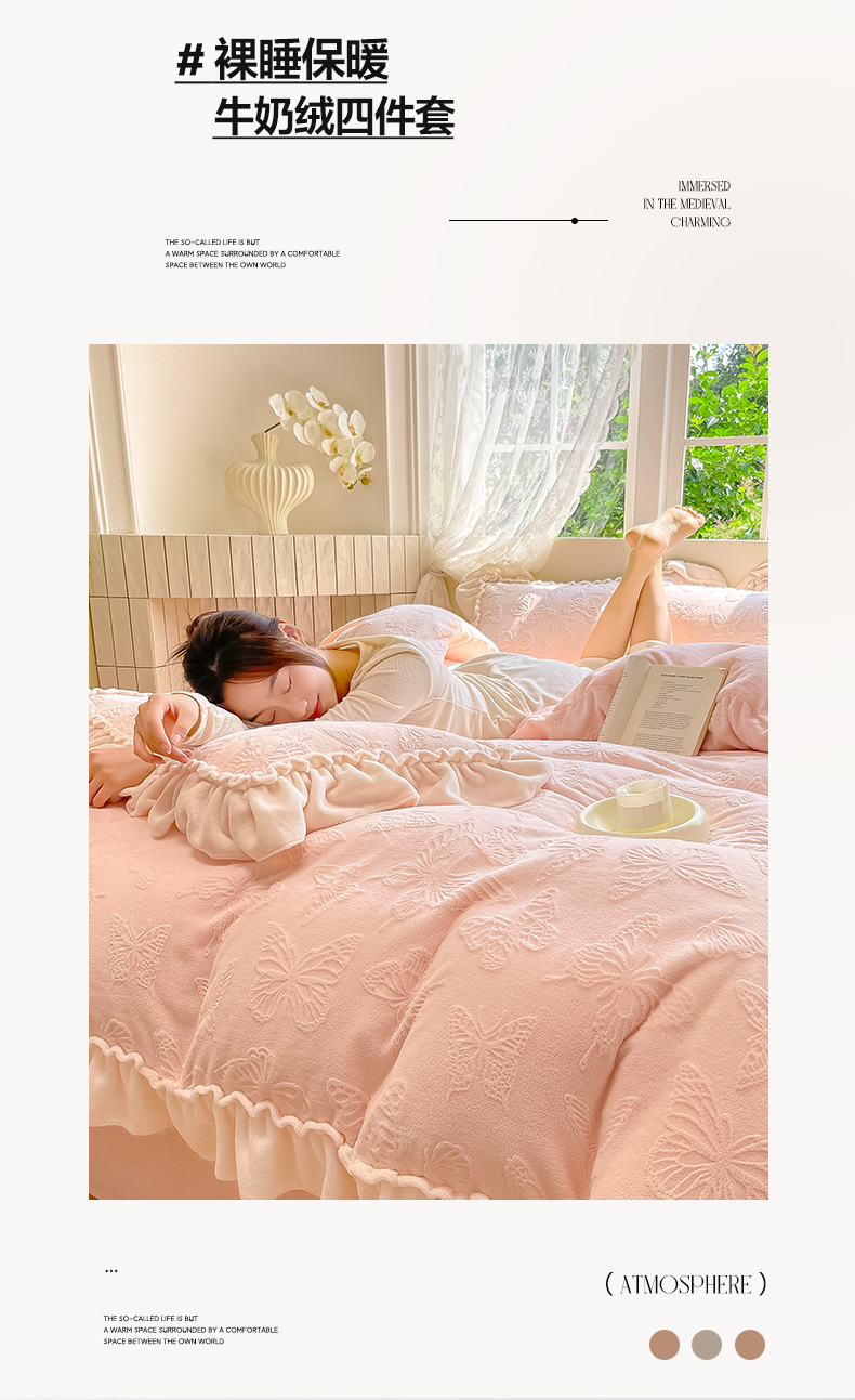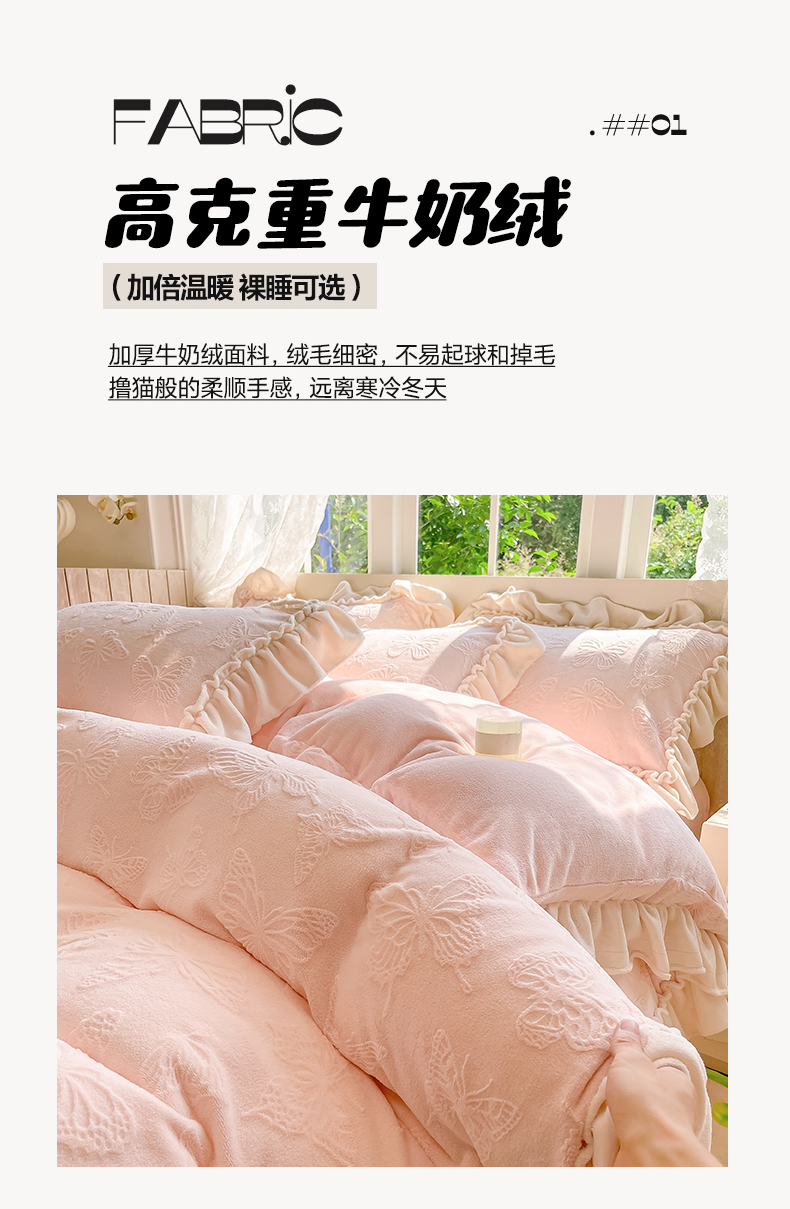 (总)水云缦 2025新款牛奶绒木耳边四件套-蝶舞系列,蝶舞-樱花粉,蝶舞-奶昔白,蝶舞-天空蓝,蝶舞-香芋紫,蝶舞-香槟金
