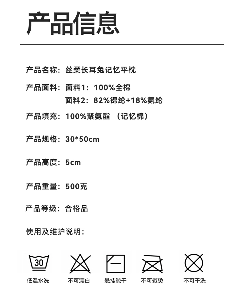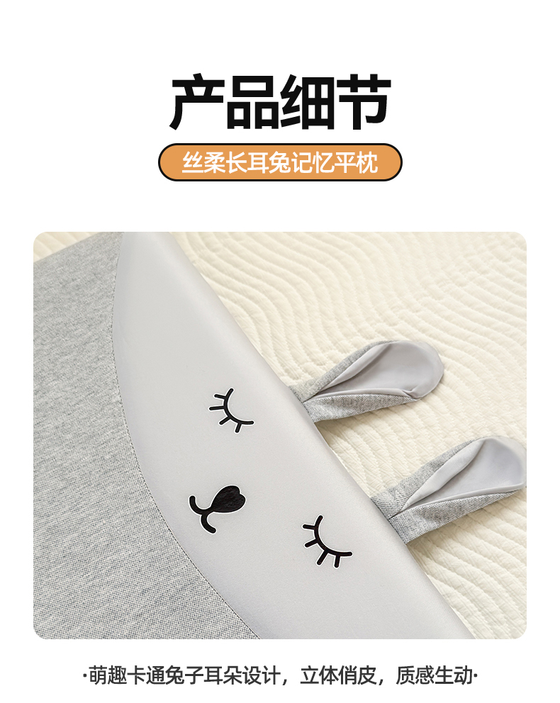 当前位置: 91家纺网 > 商品网购 > 枕头/枕芯/保健枕/颈椎枕 > 枕头枕芯 > 麦肯锡 2025新款丝柔长耳兔记忆平枕 枕头枕芯 灰色/对