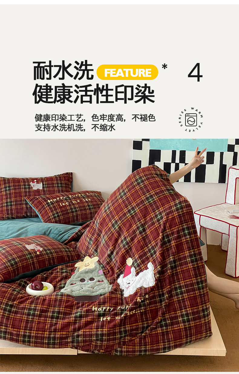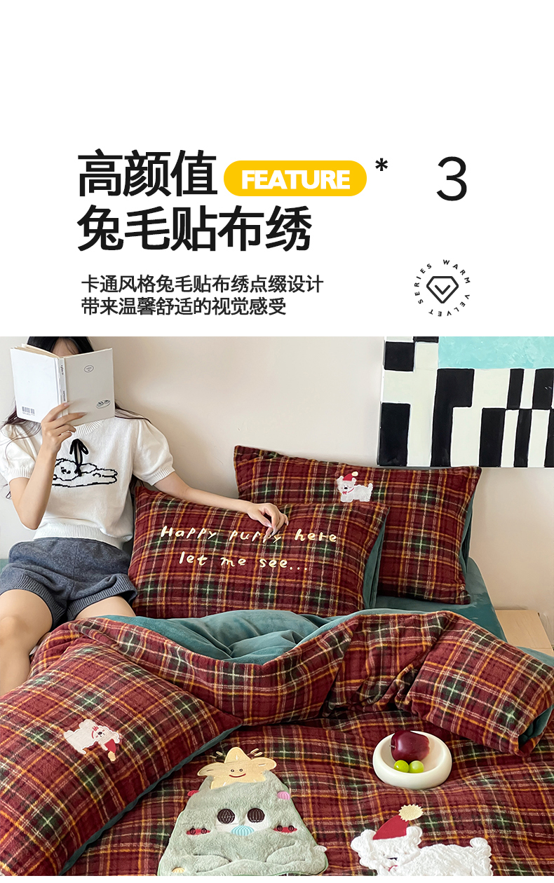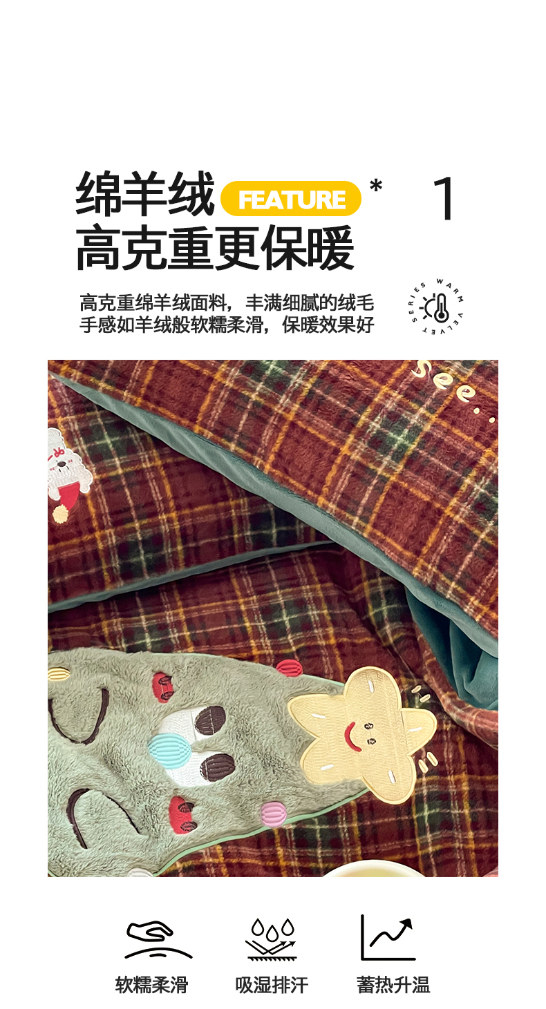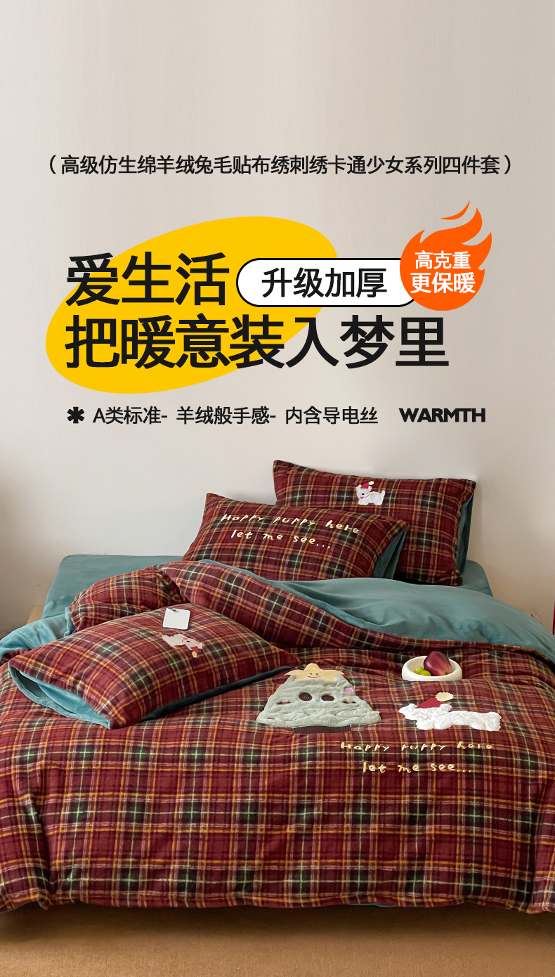 (总)桃子家居 2025新款A类高级仿生绵羊绒兔毛贴布绣刺绣工艺卡通少女加厚牛奶绒系列四件套,绵羊绒-冬日熊,绵羊绒-狗狗伙伴,绵羊绒-蓝条咖啡狗,绵羊绒-毛球猫咪,绵羊绒-圣诞小狗,绵羊绒-星星人