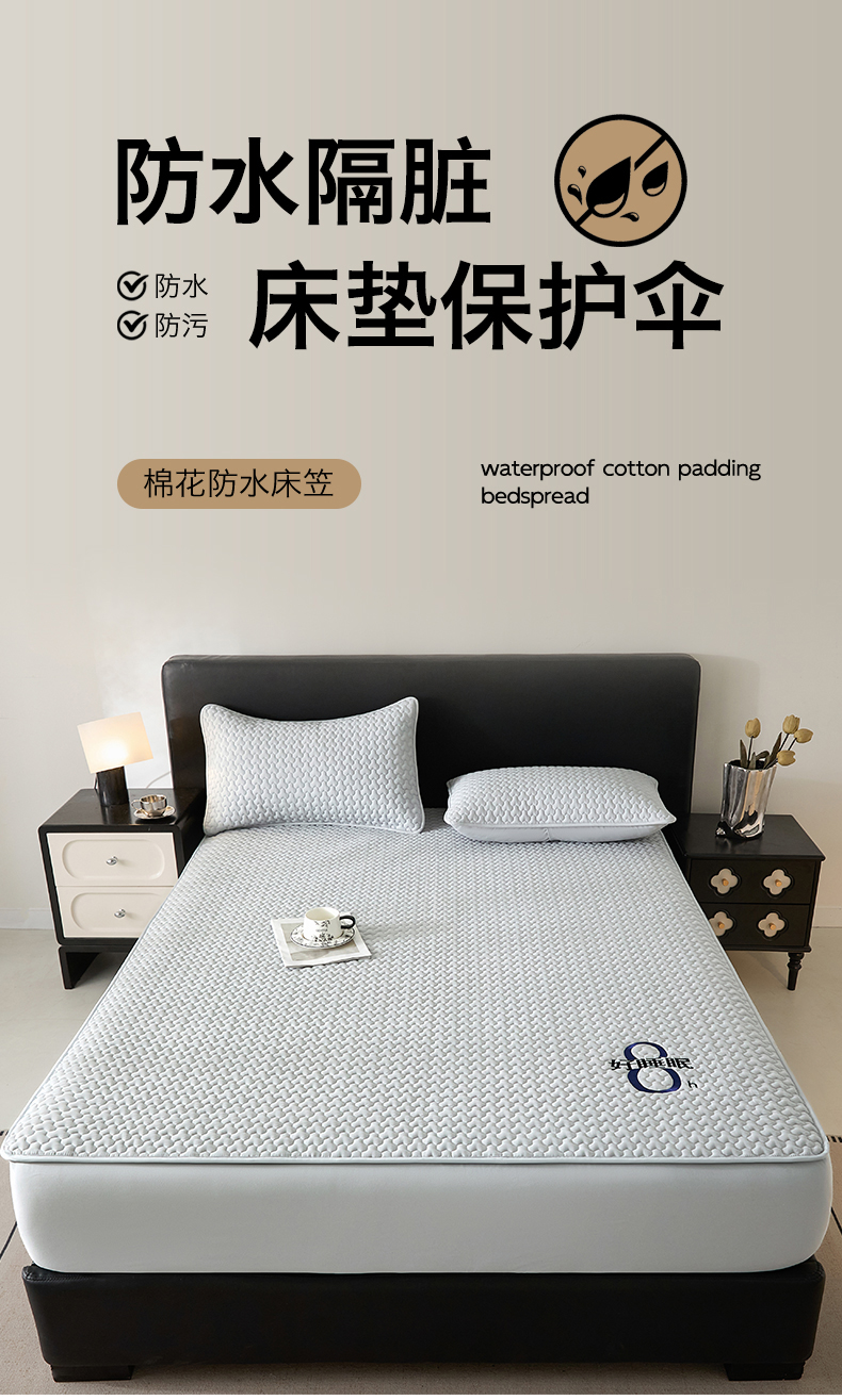 (总)居眠 2024新款水漾防水夹棉床笠床罩床垫保护套子,水漾 米白,水漾 粉色,水漾 灰色,水漾 卡其,水漾 绿色,水漾 雾蓝
