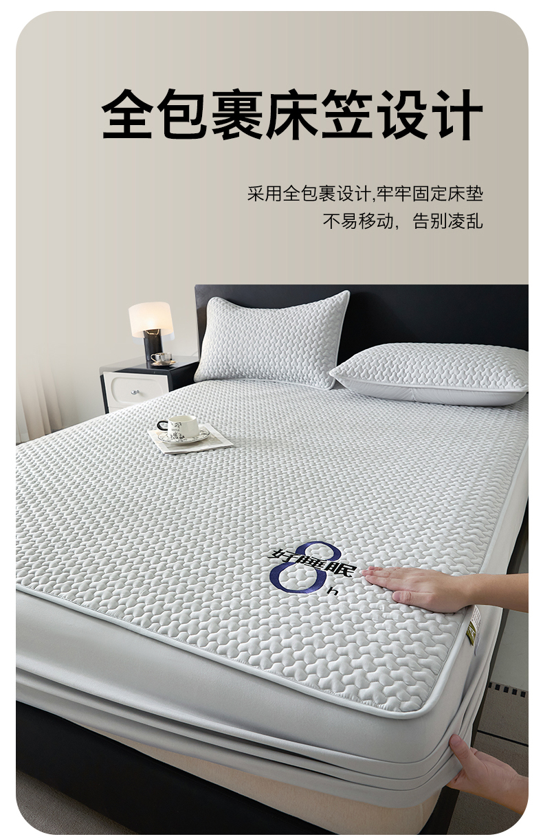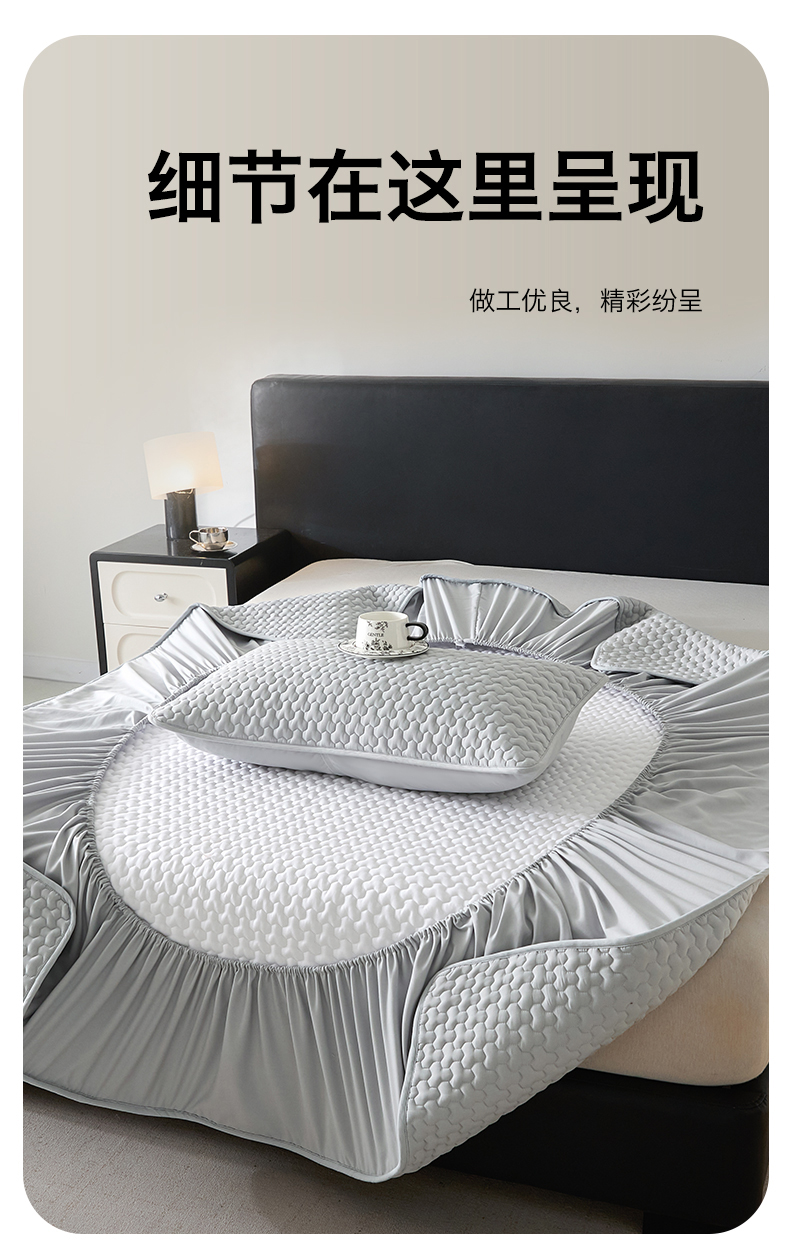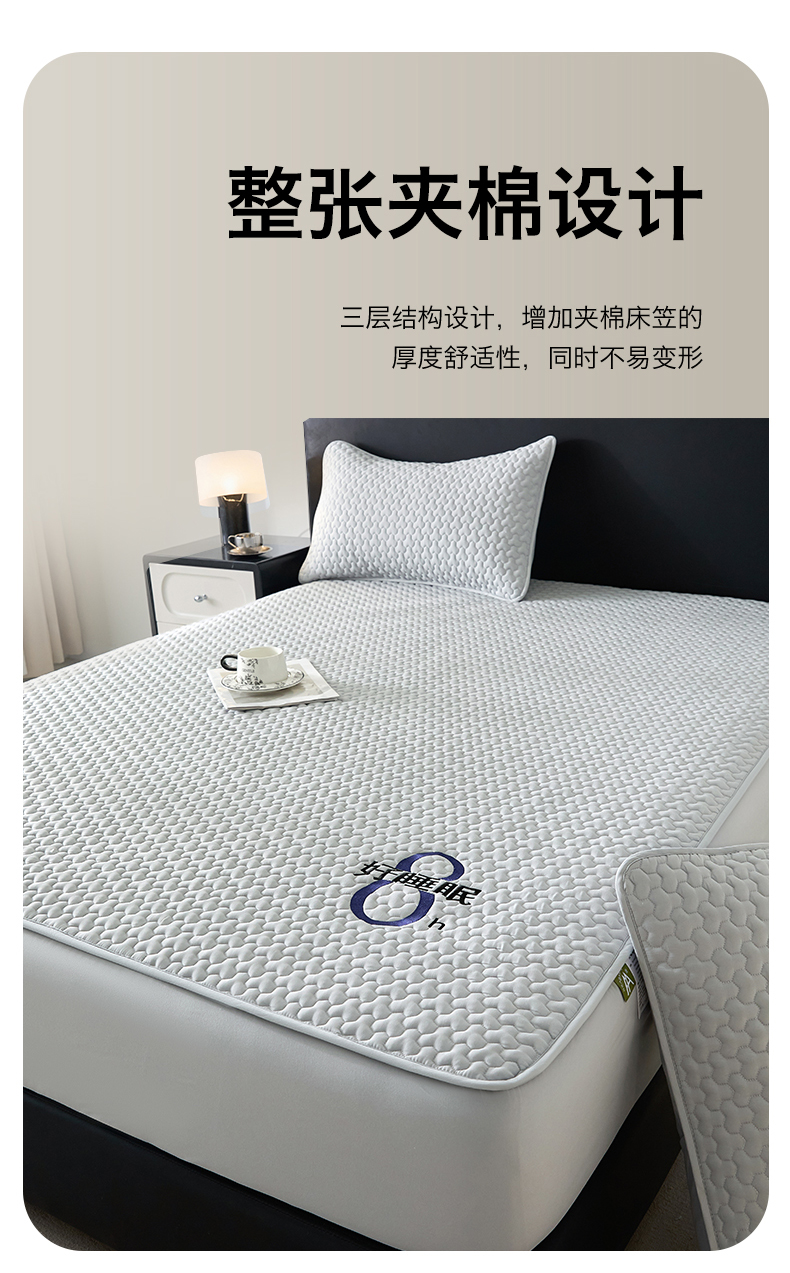 (总)居眠 2024新款防水夹棉大豆床笠-叶链,叶链-白云石,叶链-粉色,叶链-灰色,叶链-卡其,叶链-米白,叶链-雾蓝