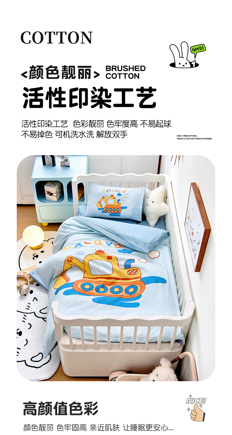 • 91家纺网 家纺一手货源 找家纺 (总)梵赫 2025新款加厚牛奶绒贴布绣原创卡通幼儿园套件儿童三件套,超级小萌怪,可爱小鸭,围巾兔,机灵小挖机,巧克力熊,组合,大象先生
