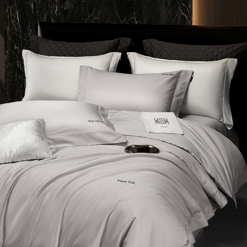 总玖玖爱家纺 纯棉100支贡缎长绒棉刺绣被套三件套四件套加大四件套,白色,高级灰,卡其,蓝灰,绿色,浅桔,深蓝,紫豆沙