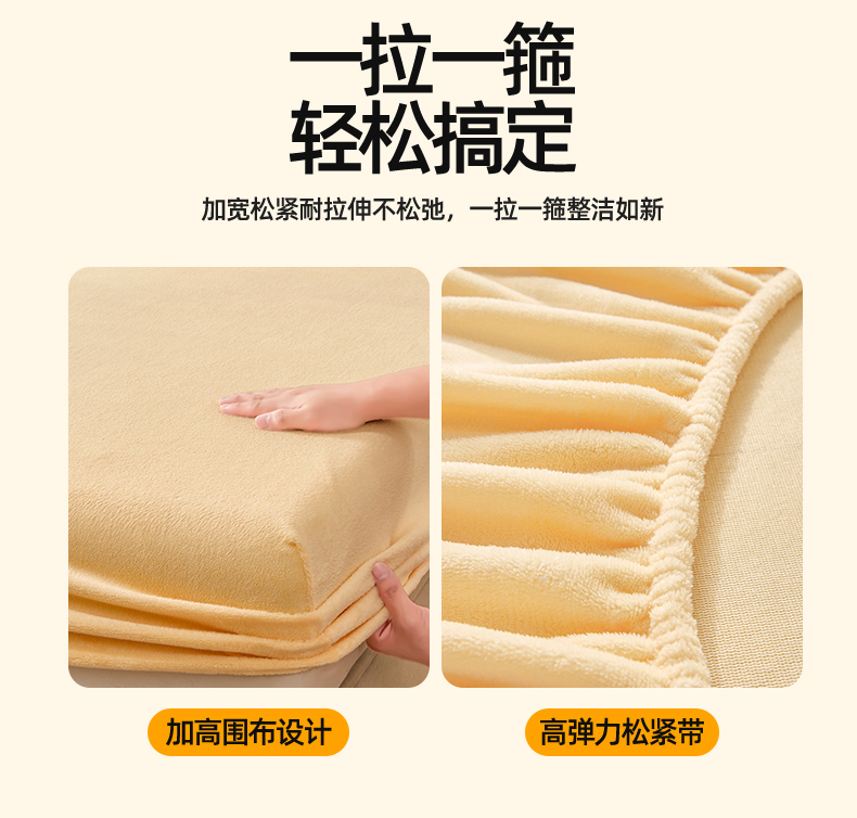 商品名称:卡诗兰家纺 2026新款单层牛奶绒床笠 虎皮黄