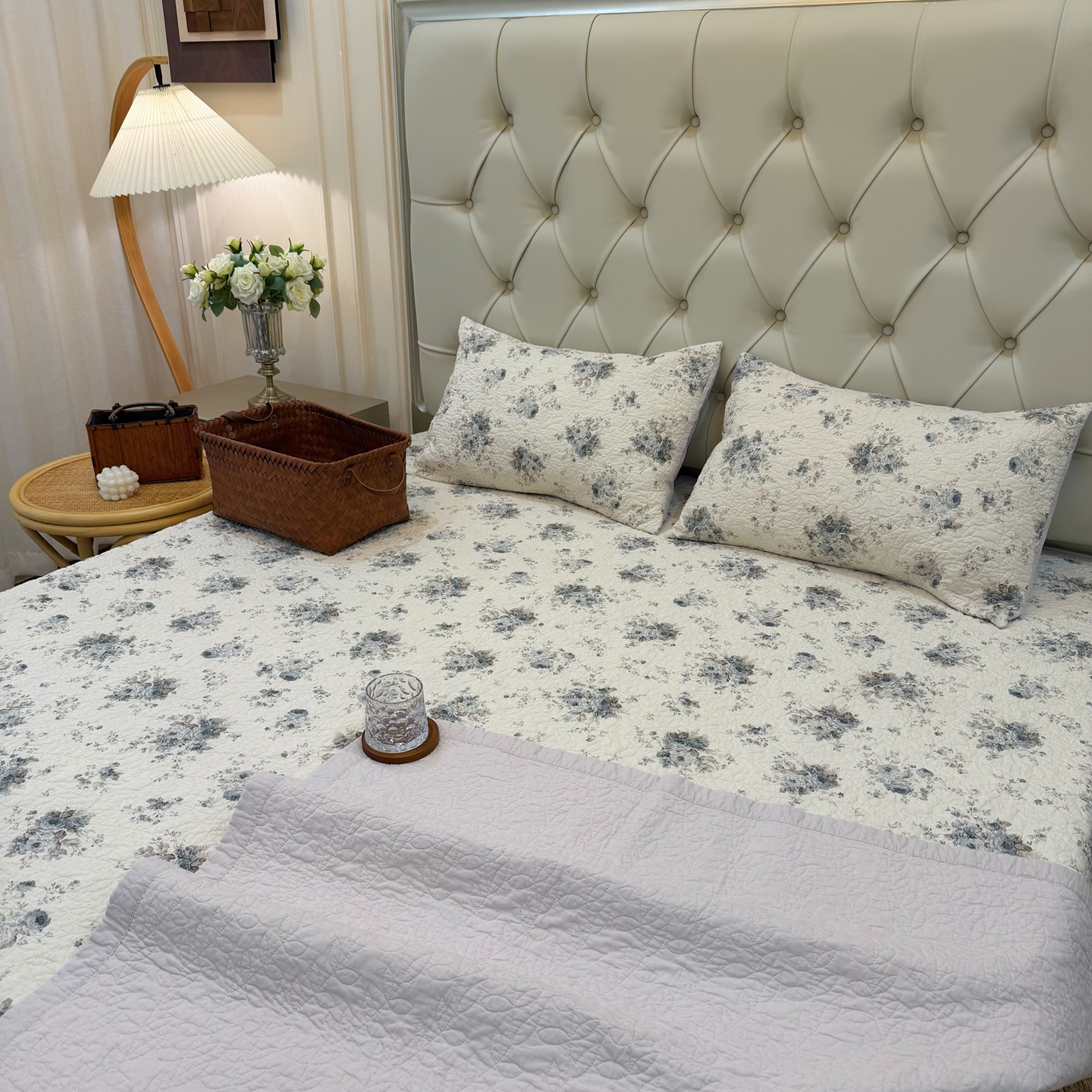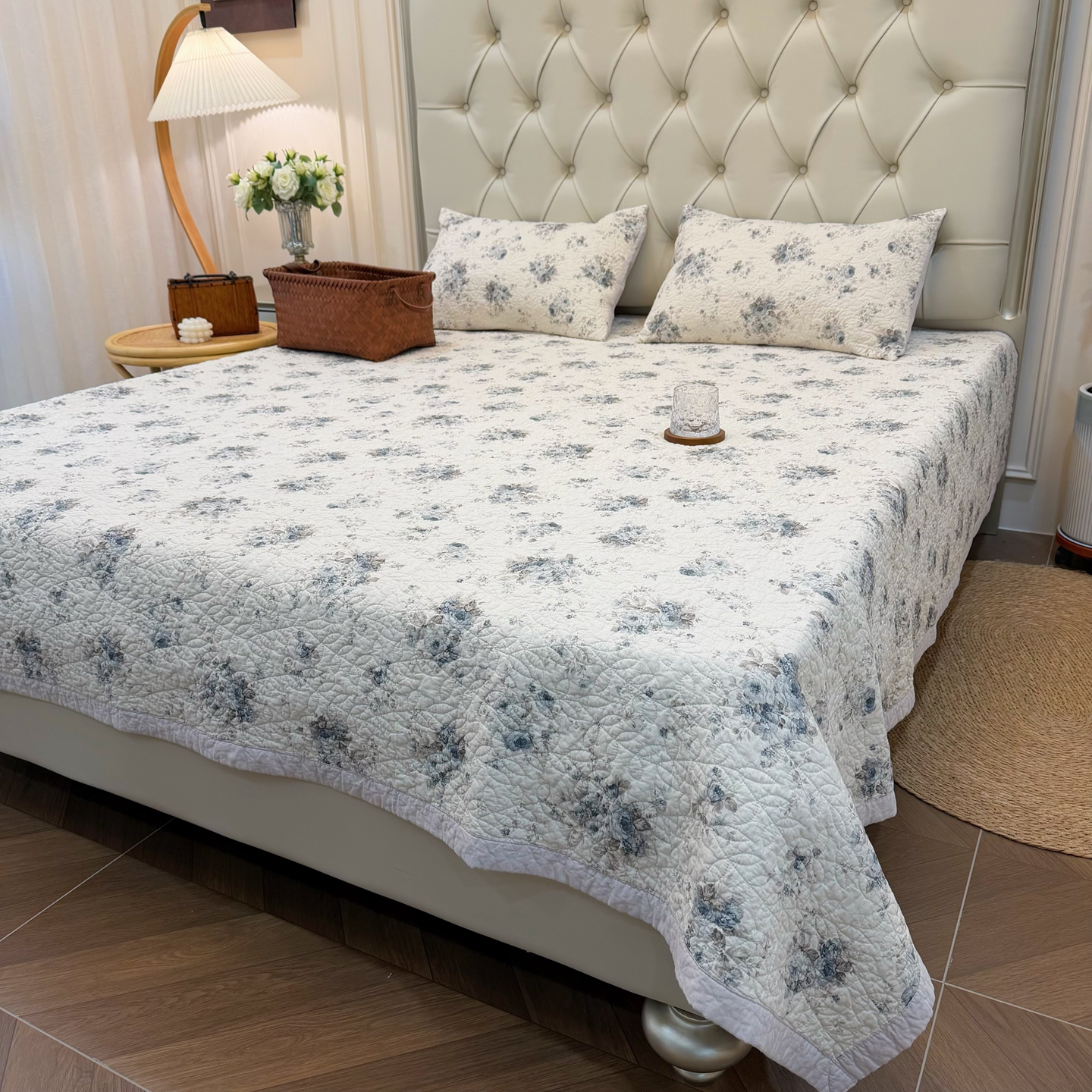 床盖工厂店 2025新款全棉天竺棉麻三件套填充棉花床盖三件套花卉系列 心上玫瑰