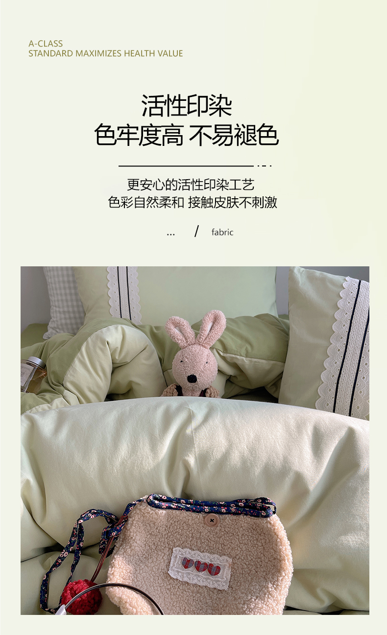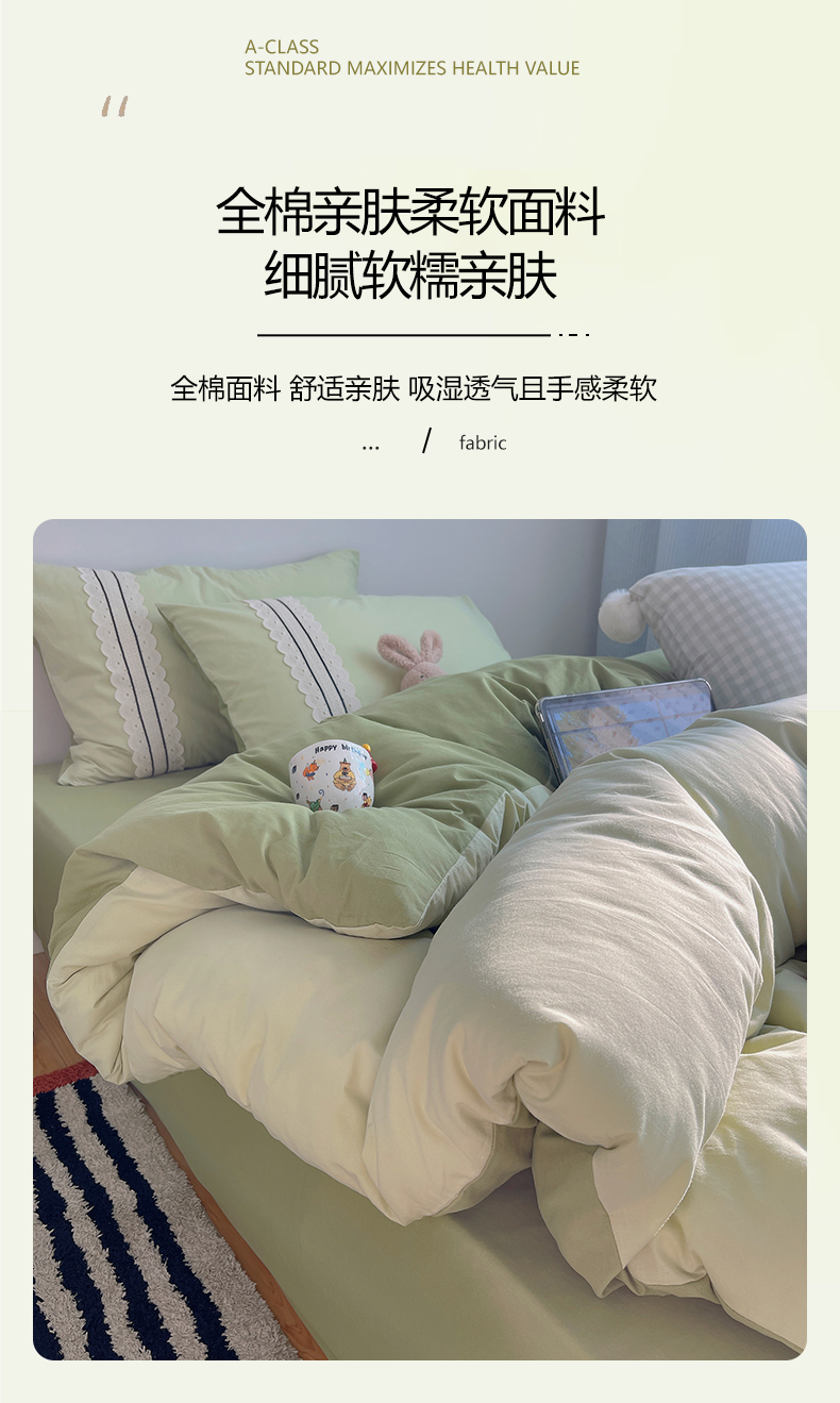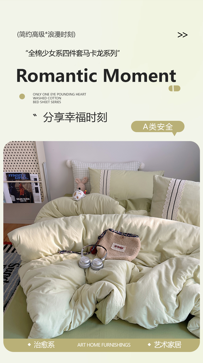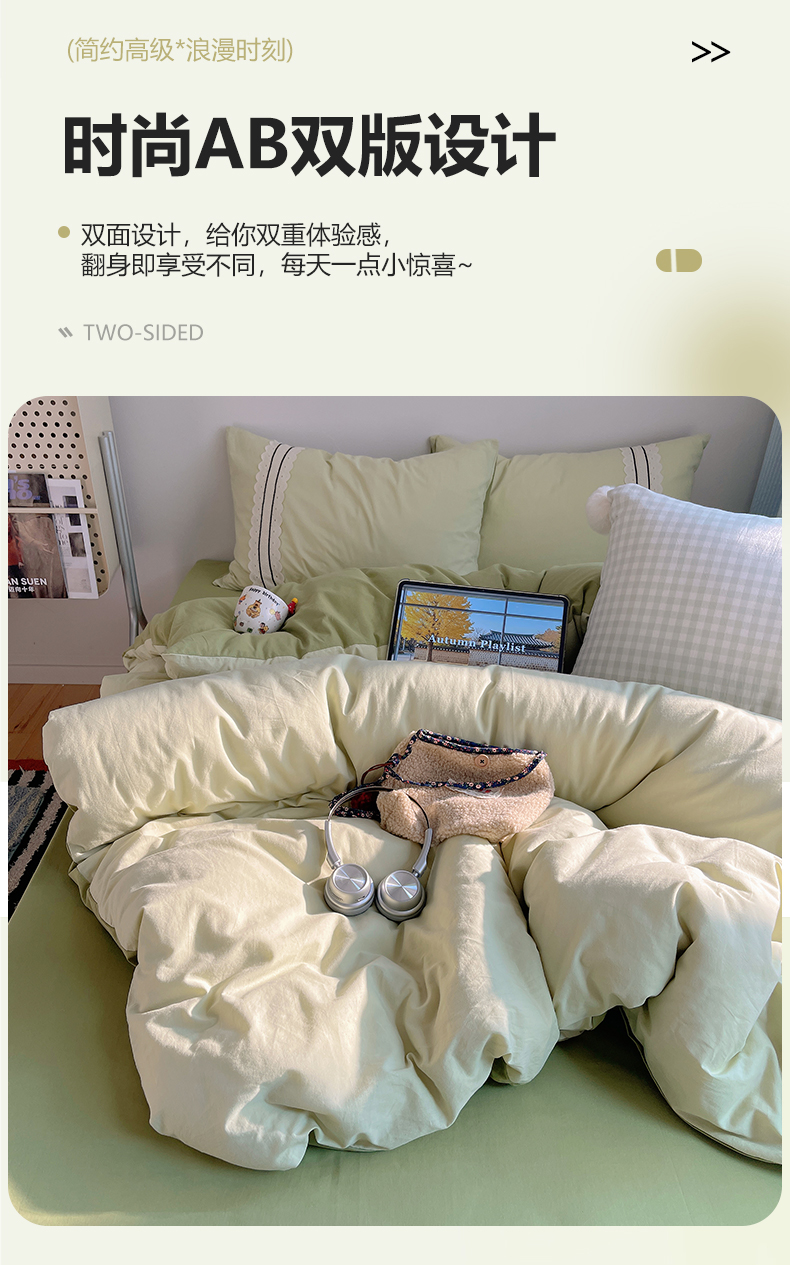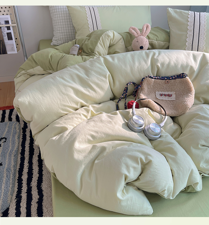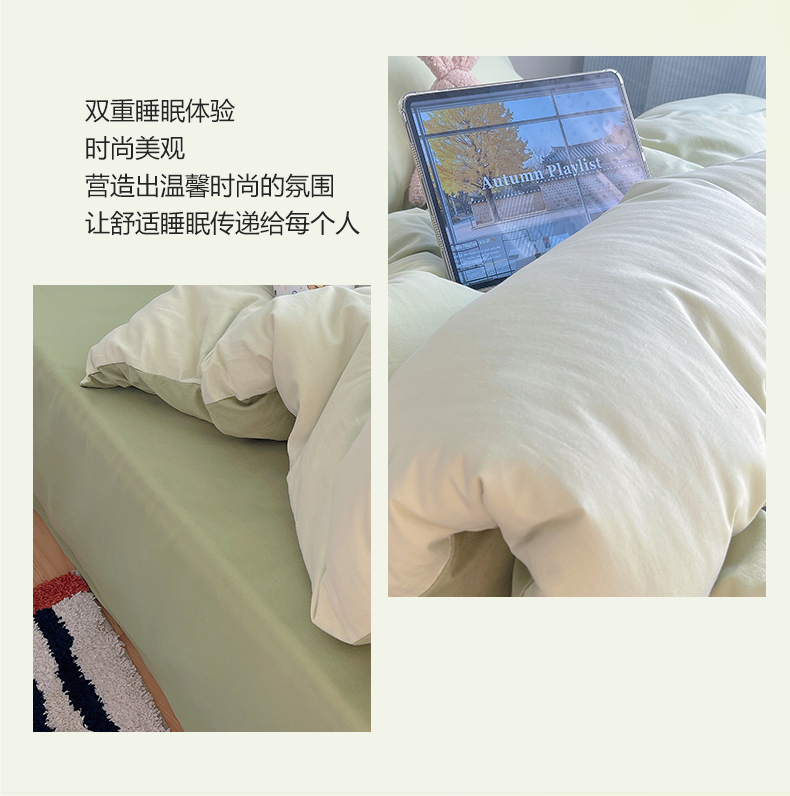 当前位置: 91家纺网 > 商品网购 > 床品套件 > 四件套 > 水洗棉四件套 > 三朵家纺 2026新款ins风全棉纯棉水洗棉少女系四件套-玛卡龙系列 马卡龙-粉绿