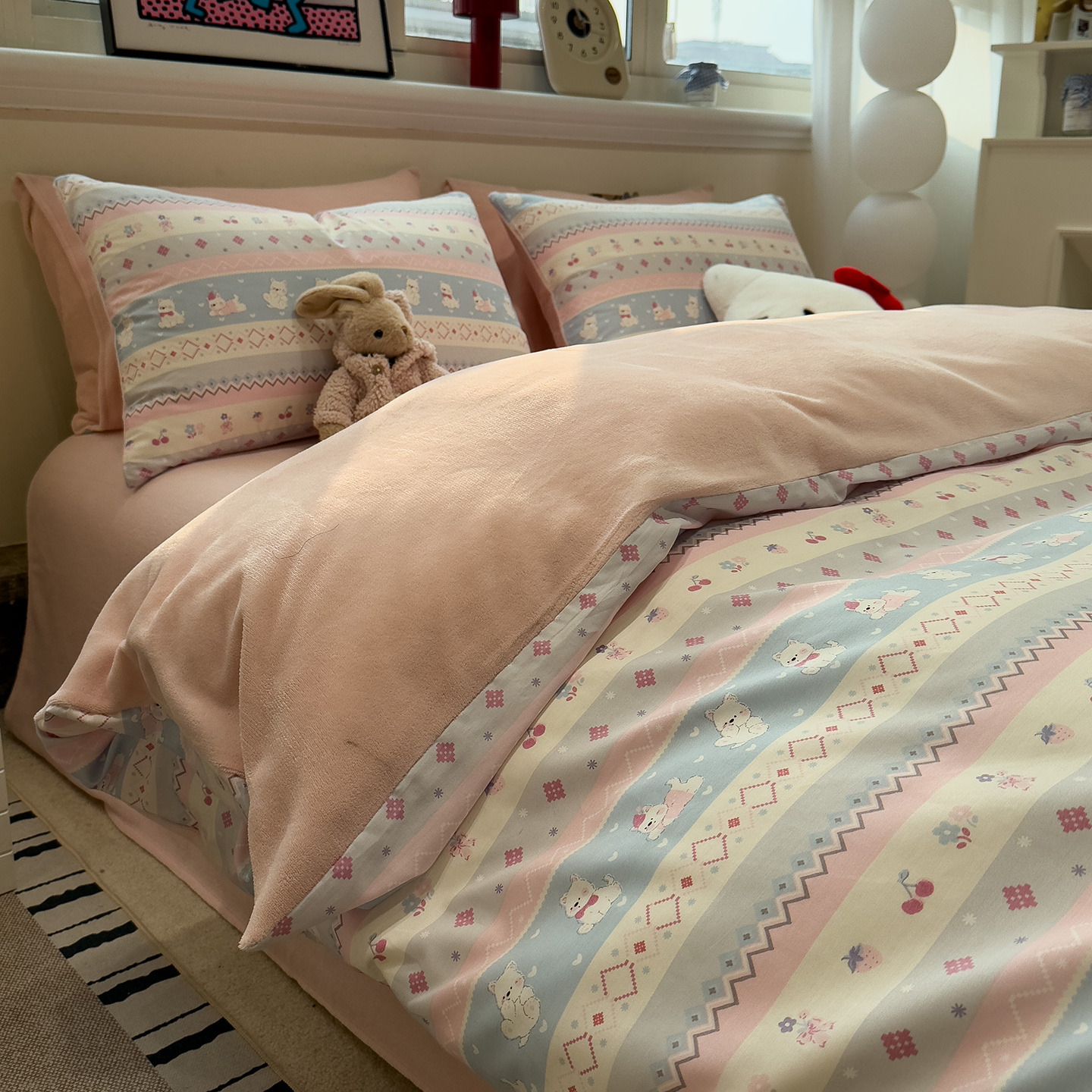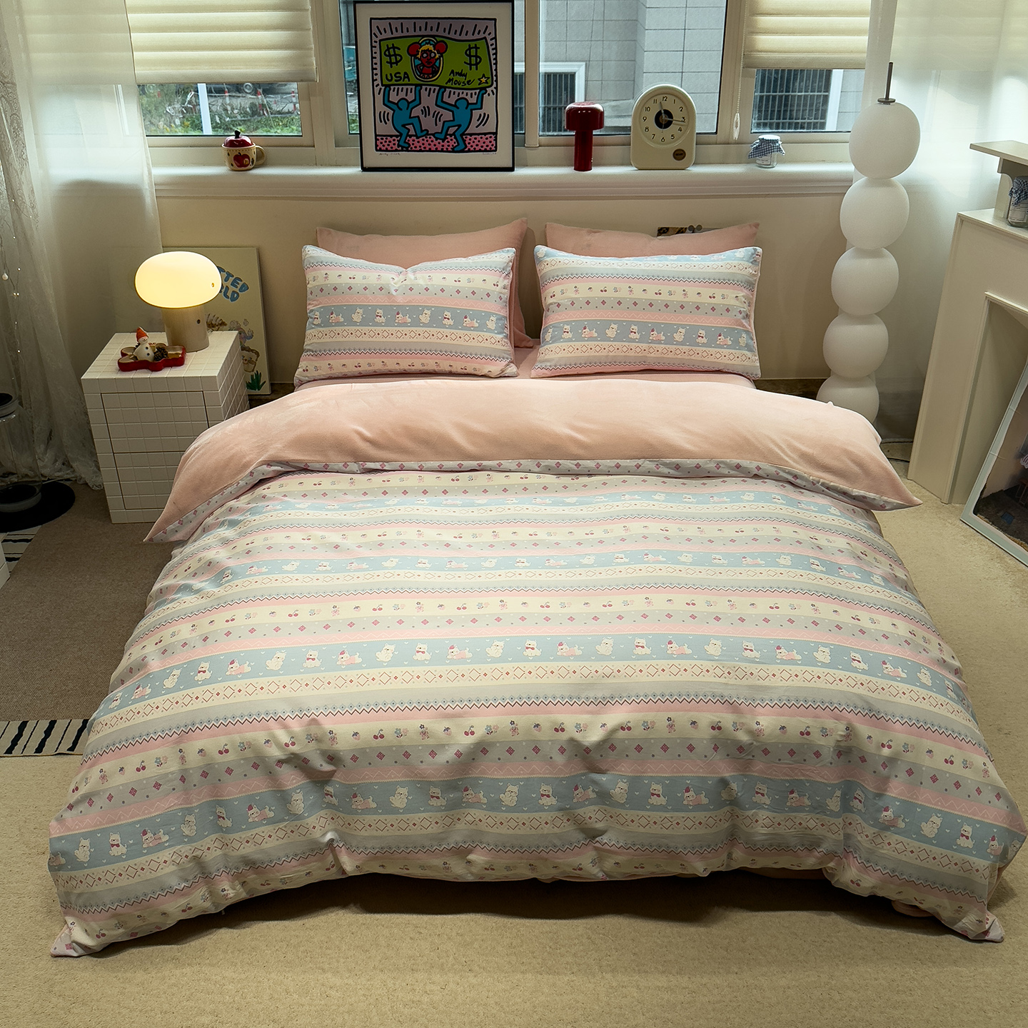 当前位置: 91家纺网 > 商品网购 > 床品套件 > 四件套 > 牛奶绒四件套 > 呗旺鹿 2025新款A版全棉B版牛奶绒四件套 糖果小马