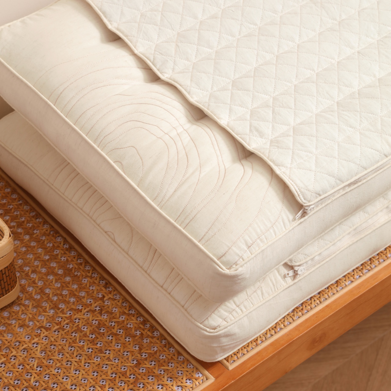 (总)yyds网供 2025新款绗缝护颈枕芯长方形全棉麻枕头纯棉亚麻立体定型枕头枕芯,麻间时光绗缝护颈枕