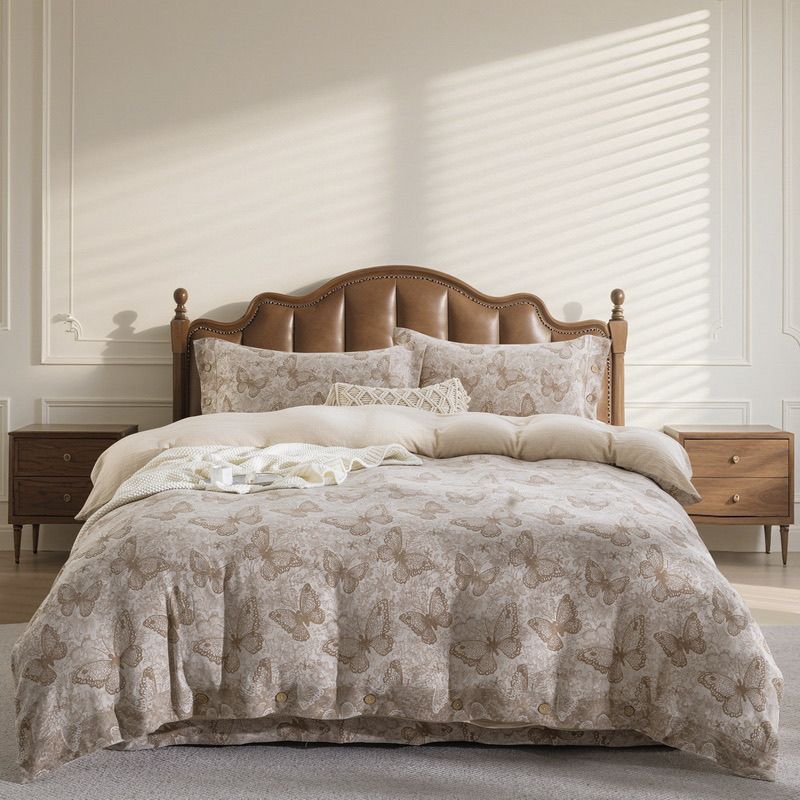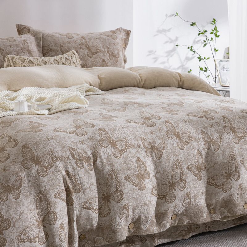 (总)仰望棉麻双层纱供应链 2025新款全棉纯棉色织提花纽扣款四件套-蝶恋