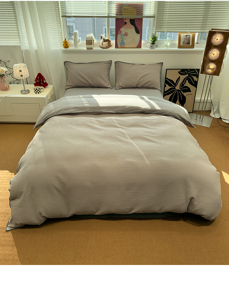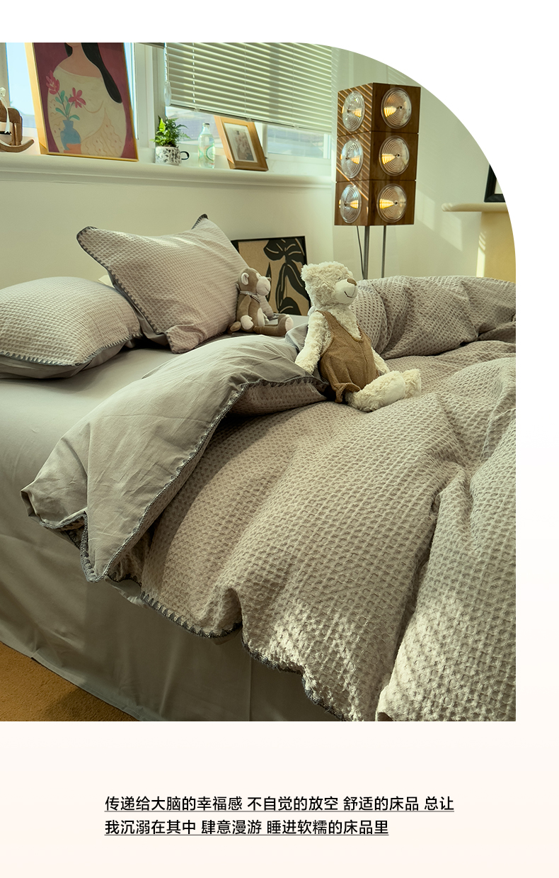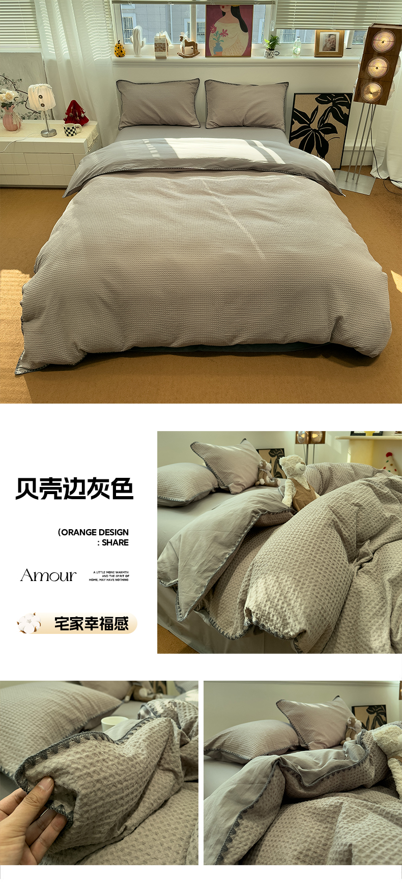 商品名称:雅居纺家纺 2026新款全棉贝壳边华夫格四件套 贝壳边灰色