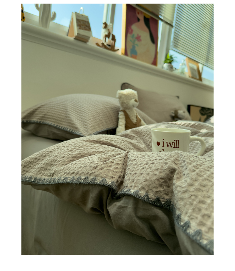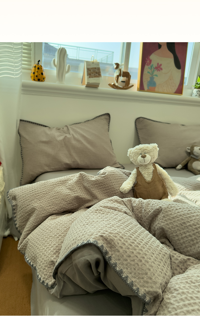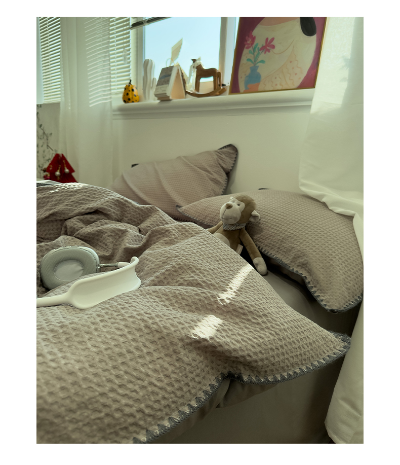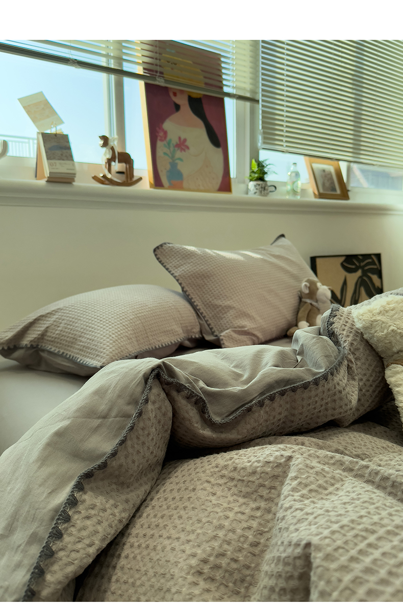 商品名称:雅居纺家纺 2026新款全棉贝壳边华夫格四件套 贝壳边灰色