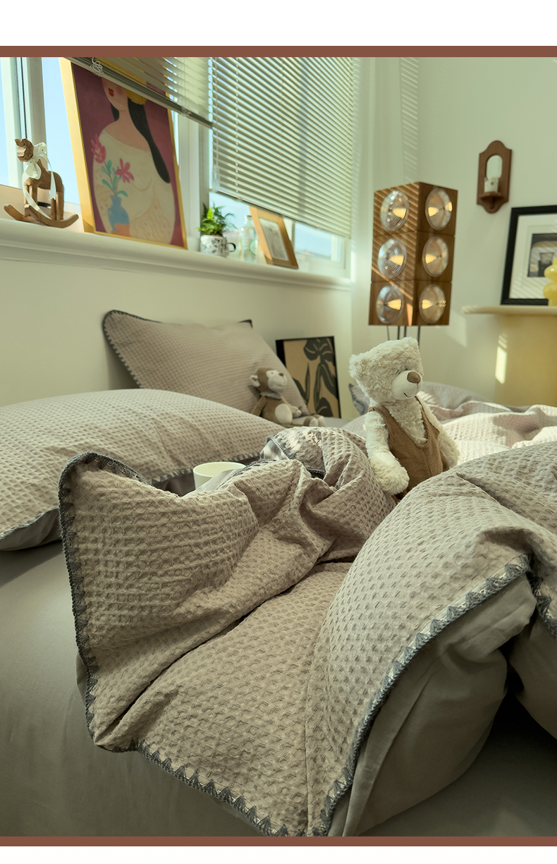 雅居纺家纺 2026新款全棉贝壳边华夫格四件套 贝壳边灰色
