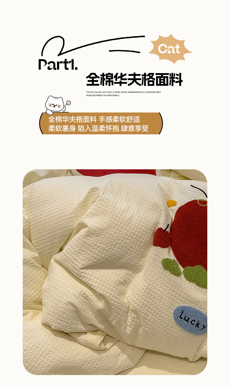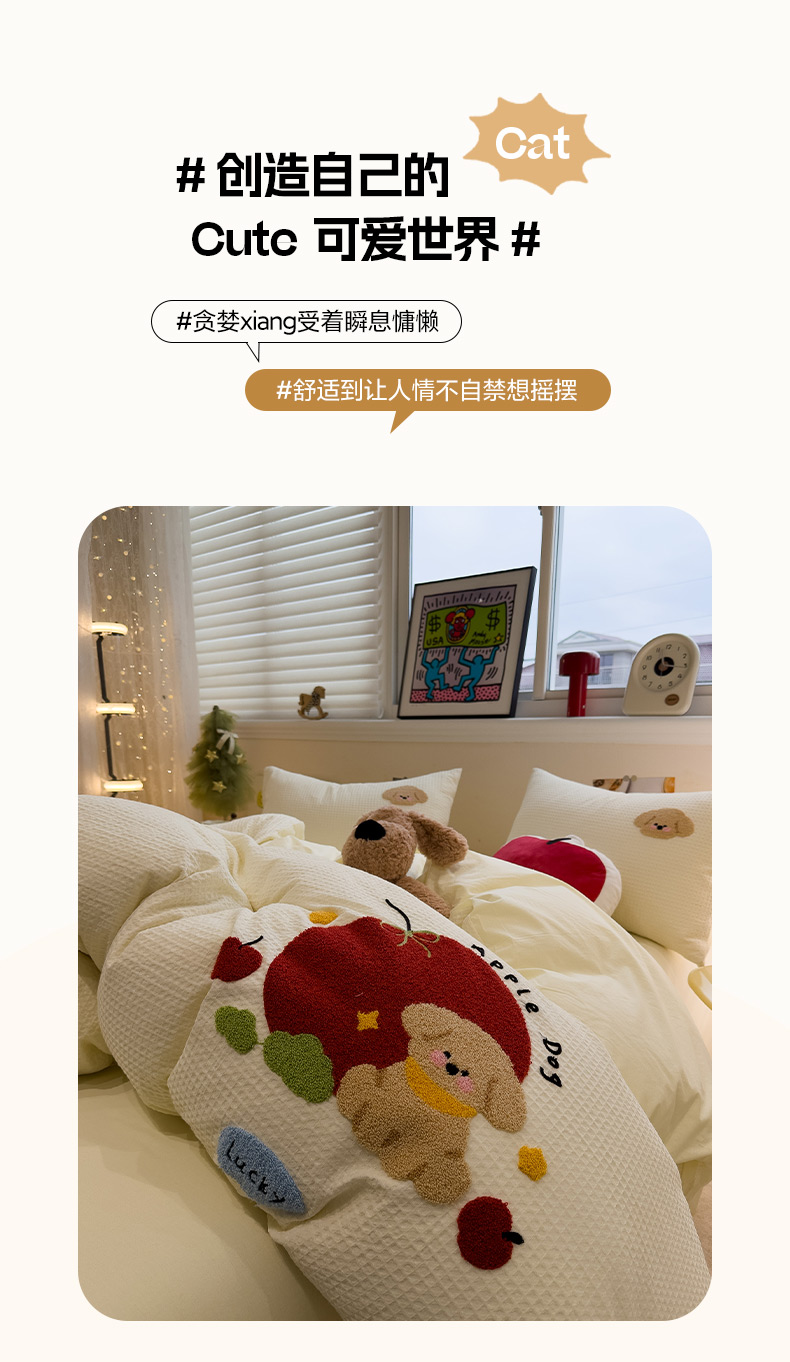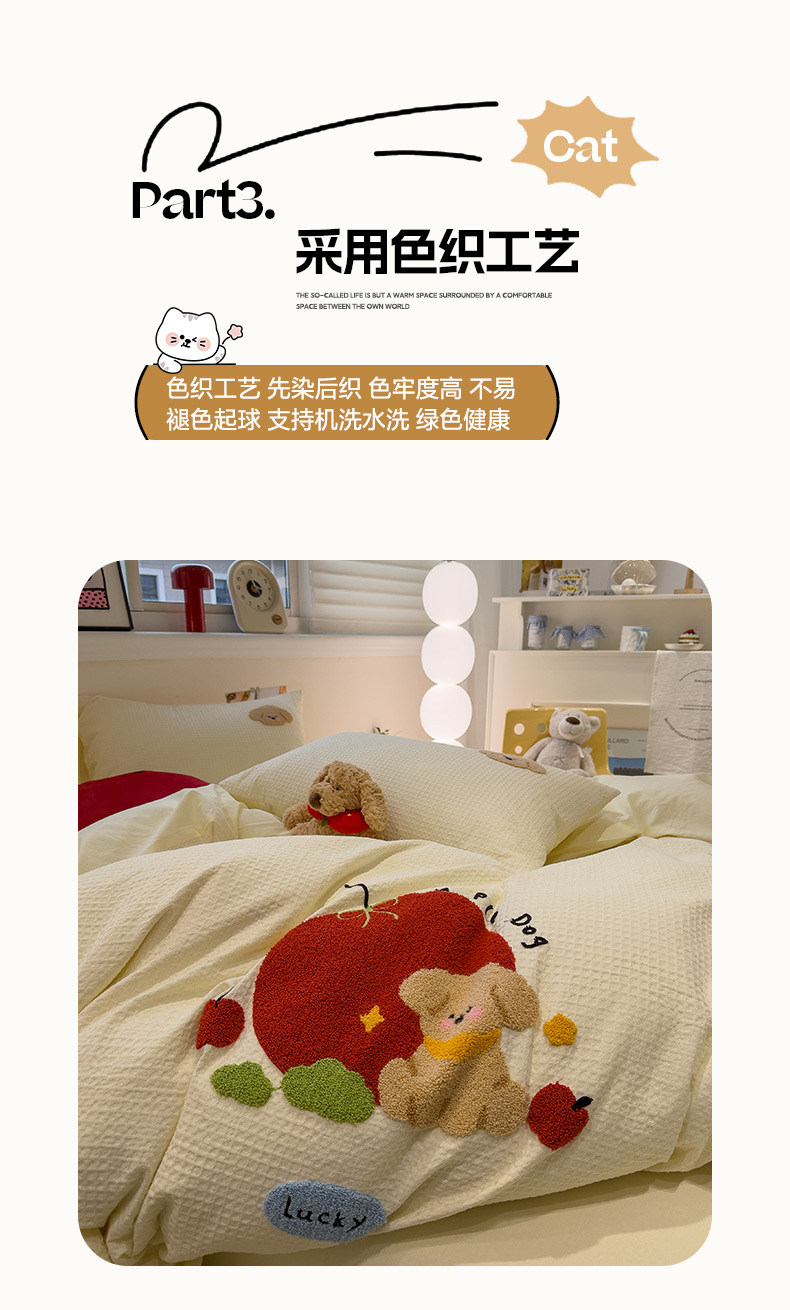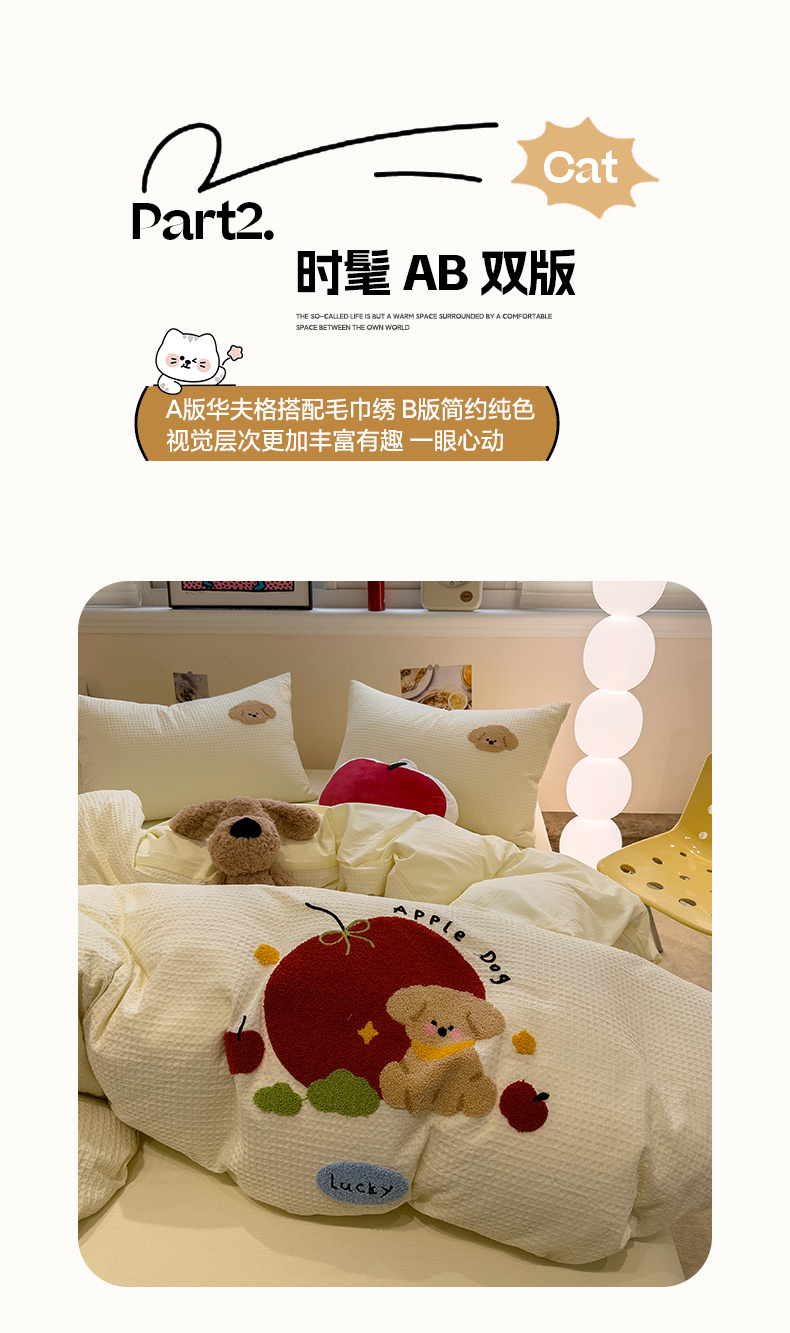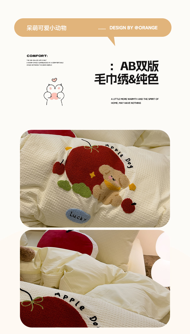 当前位置: 91家纺网 > 商品网购 > 床品套件 > 四件套 > 全棉普通四件套 > 雅居纺家纺 2026新款全棉华夫格毛巾绣四件套 米黄苹安狗