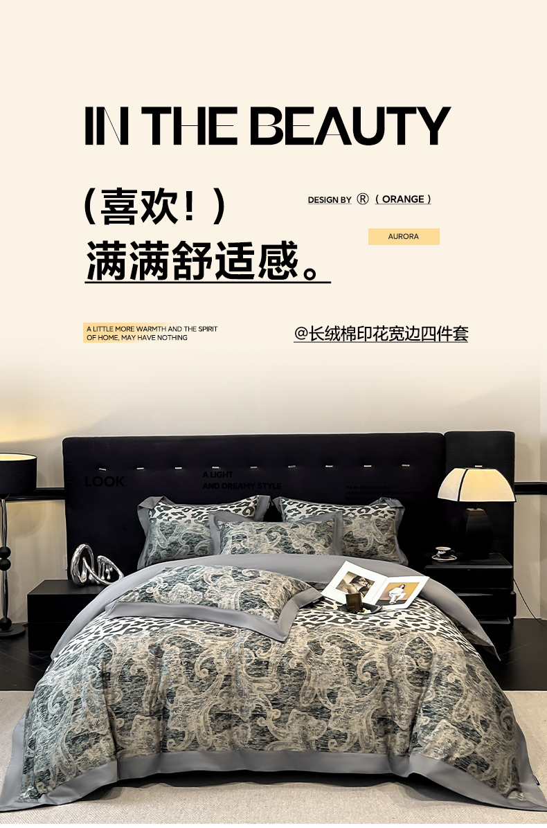 当前位置: 91家纺网 > 商品网购 > 床品套件 > 四件套 > 全棉普通四件套 > (总)博纳家纺 2026新款正宗60支纯棉 活性数码印花 宽边高级简奢 撞色拼角 纯棉四件套