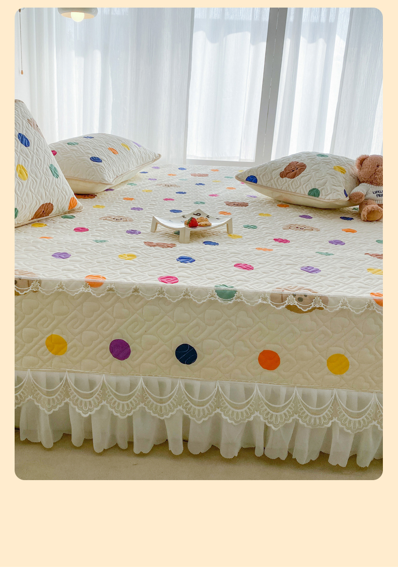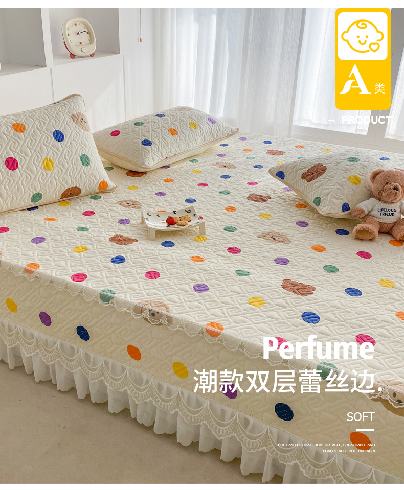 • 91家纺网 家纺一手货源 找家纺 一电 2026新款定做纯棉榻榻米床盖 防滑A类四季通用夹棉炕罩 软垫大炕专用床单 柔色圆点
