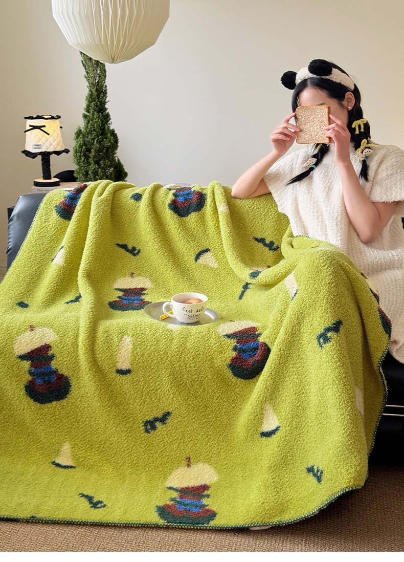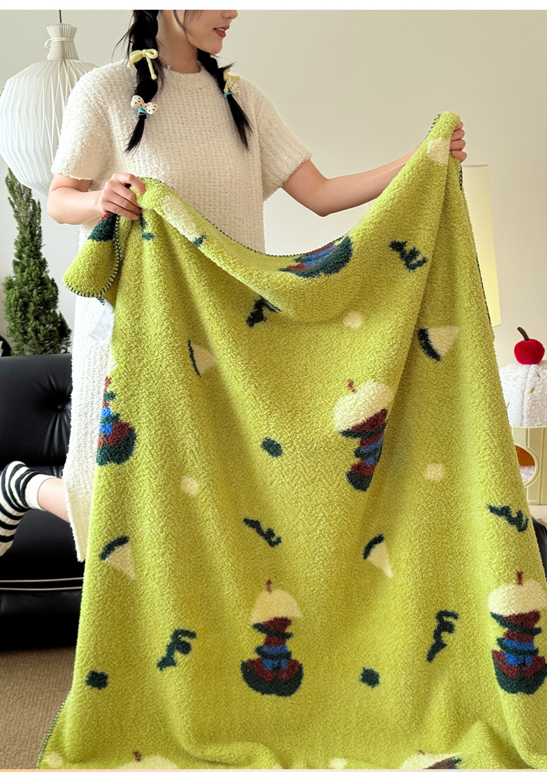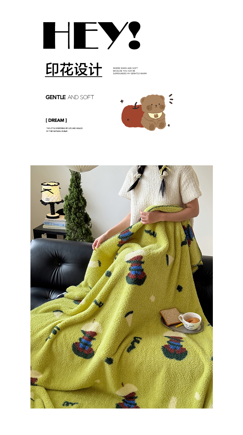 舒隅家纺 2026新款多功能针织半边绒毯 苹果小熊