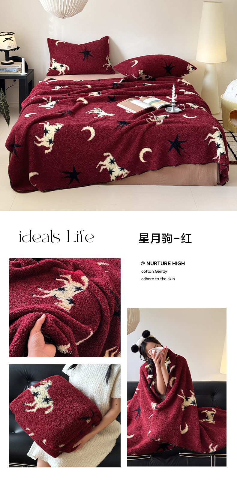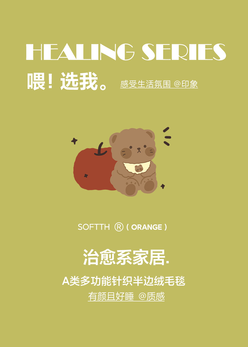 (总)舒隅家纺 2026新款多功能针织半边绒毯,星月驹-橙,苹果小熊,绒球小猫,星月驹-红