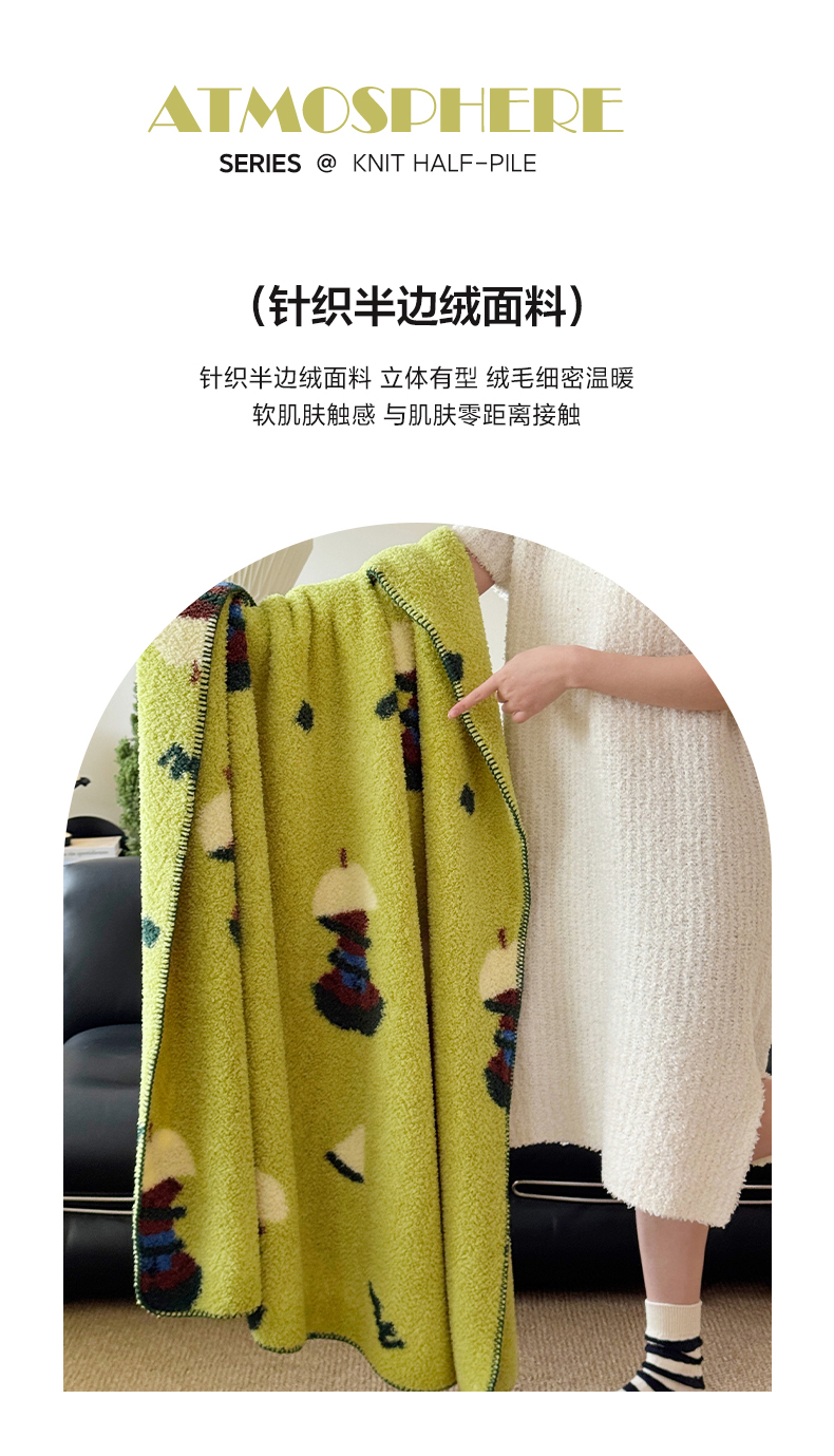 商品名称:舒隅家纺 2026新款多功能针织半边绒毯 苹果小熊