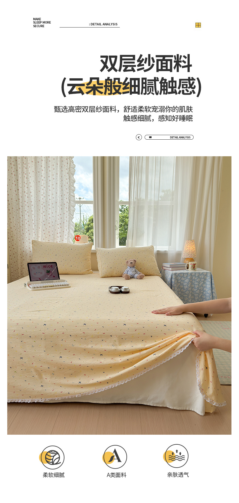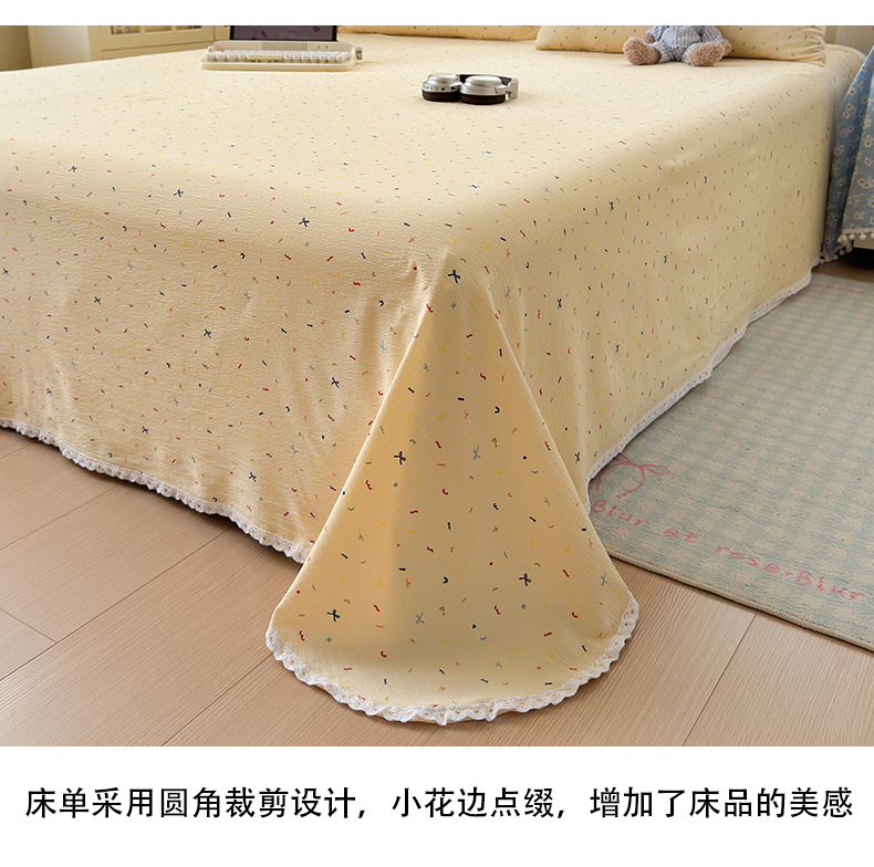 沐芷 2026 【提供买家秀】A类白花边床单单件 单人双人床单三件套 冰淇淋