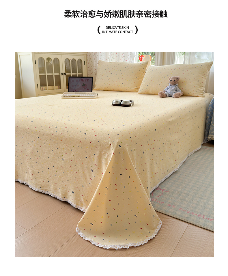 • 91家纺网 家纺一手货源 找家纺 沐芷 2026 【提供买家秀】A类白花边床单单件 单人双人床单三件套 冰淇淋