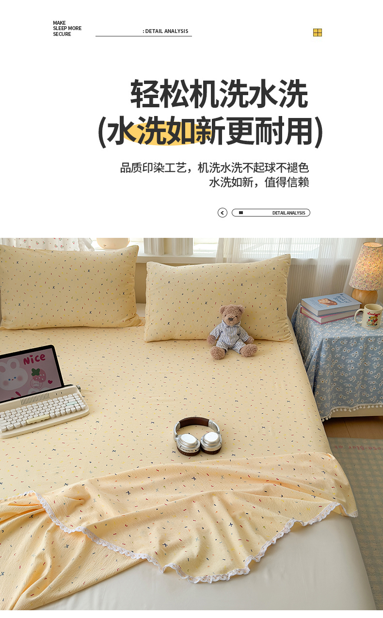(总)沐芷 2026 【提供买家秀】古法水洗仿棉床笠席梦思床罩床垫防滑床套罩床笠三件套,萌物,甜梦糖豆,巴黎甜心,白月光,豹纹音乐,波点汪语,彩虹跳跳糖,漫游小鱼,萌犬游记,迷你格-黄,迷你格-蓝,奶味圆饼,暖意小熊,星仔,樱桃物语,组合图