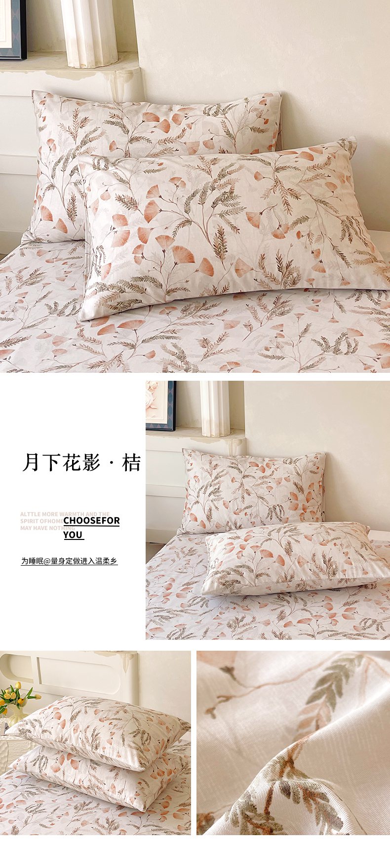 (总)金鑫汇家纺 2026新款全棉印花小清新单枕套系列-可露丽,海盐可露丽,浅咖可露丽,浅绿可露丽,月下花影-桔,月下花影-蓝,月下花影-绿